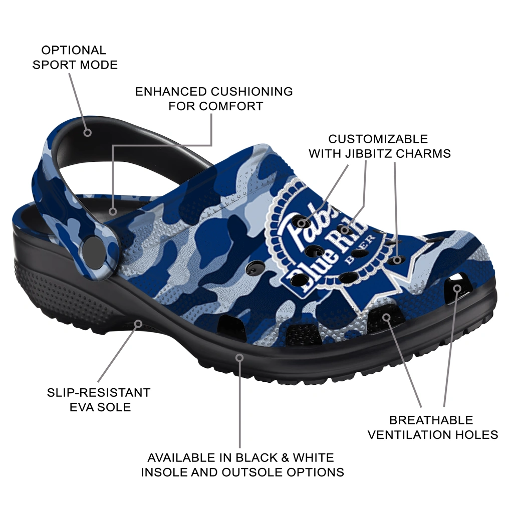 Customized Pabst Blue Ribbon Camou Blue Gray Clogs