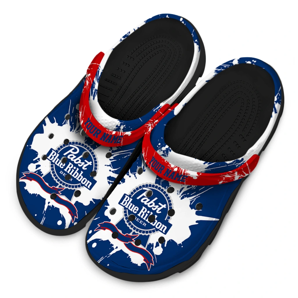 Customized Pabst Blue Ribbon Splash Pattern Blue White Clogs