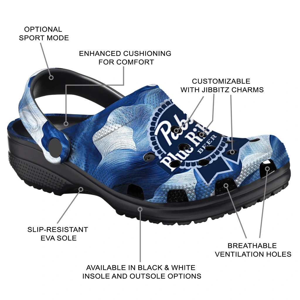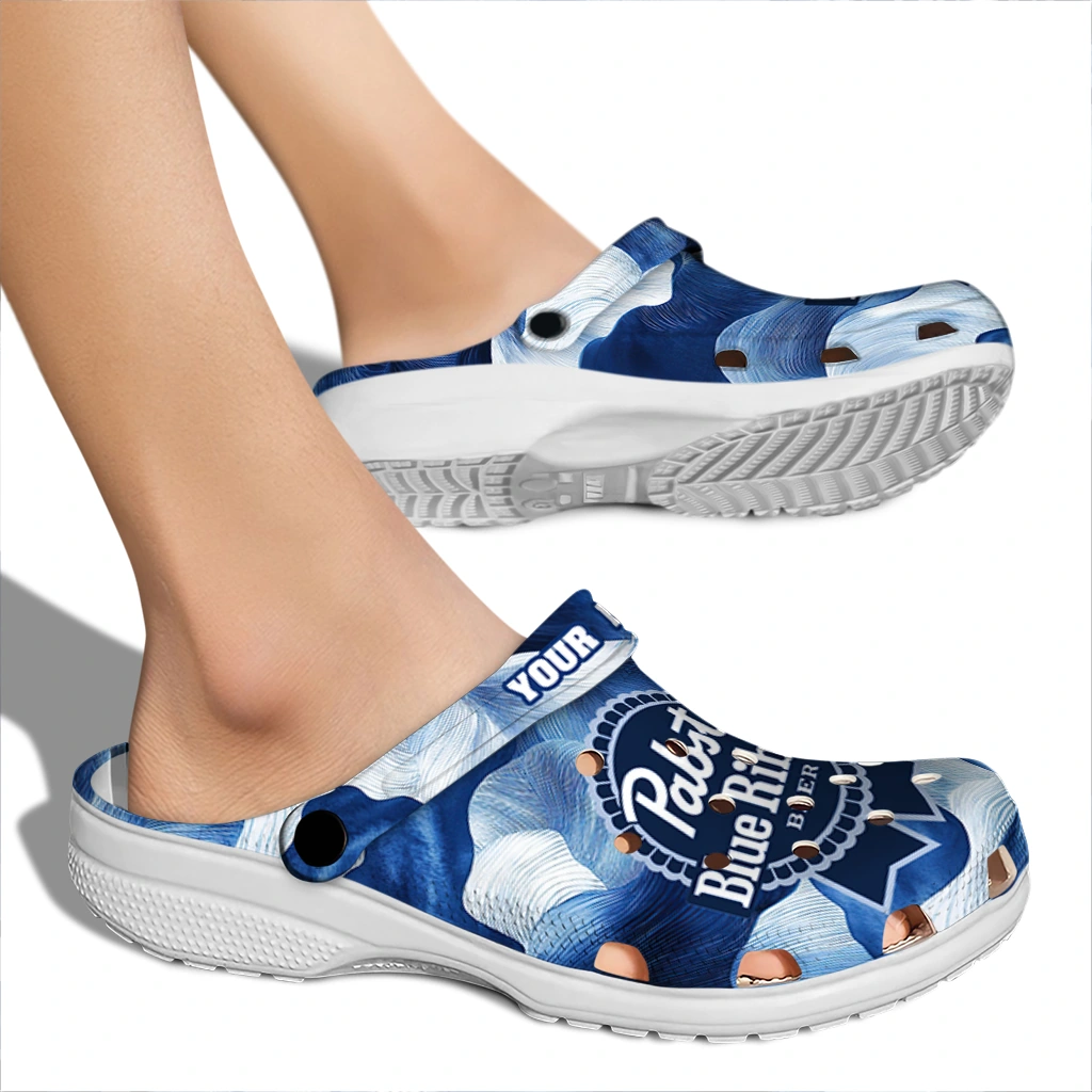 Customized Pabst Blue Ribbon Wave Blue White Clogs