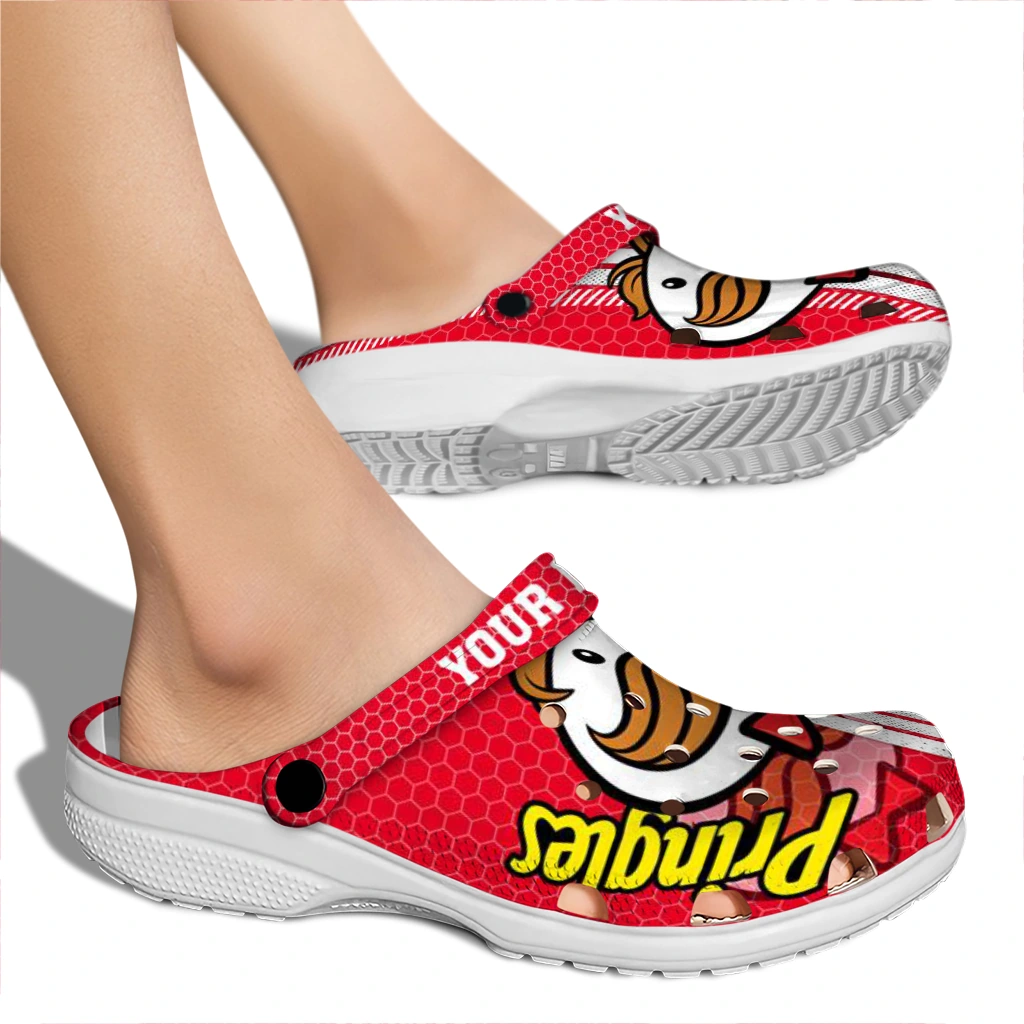 The Customized Pringles Happy Mascots Red White Clogs from Hey Clogs slips on in seconds and keeps pace with your day – from slow mornings at home to city strolls and weekend getaways. Thoughtful design meets playful style with cheerful colors and prints that pop, adding personality to every step while delivering easy, breezy comfort and lightweight support wherever you wander. Want a signature touch? Customize yours with a name or initials for a one-of-one pair.