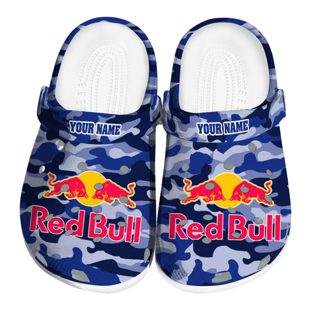 The Customized Red Bull Camouflage Blue Gray Clogs from Hey Clogs slips on in seconds and keeps pace with your day – from slow mornings at home to city strolls and weekend getaways. Thoughtful design meets playful style with cheerful colors and prints that pop, adding personality to every step while delivering easy, breezy comfort and lightweight support wherever you wander. Want a signature touch? Customize yours with a name or initials for a one-of-one pair.