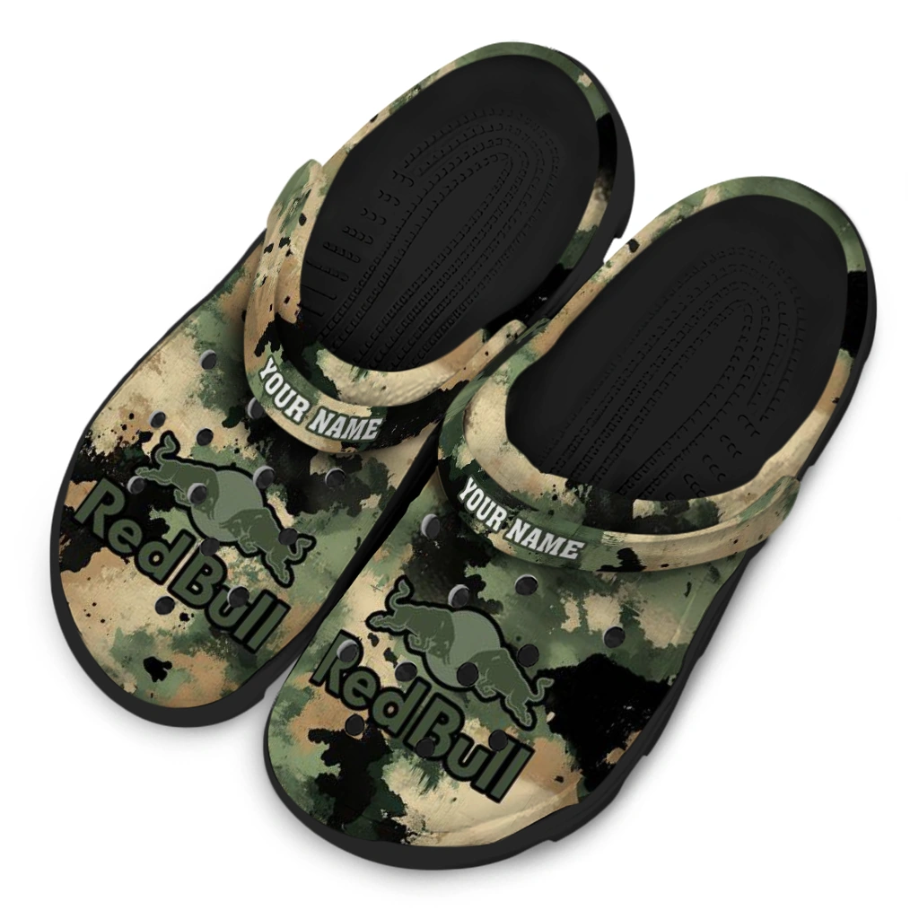 Be the first to review “Customized Red Bull Green Camouflage Green Black Clogs”