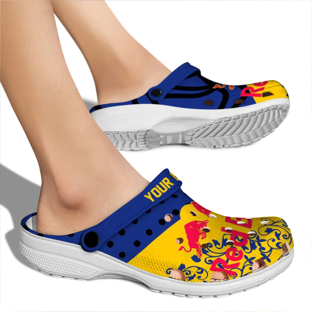 Customized Red Bull Ornate Patterns Blue Yellow Clogs