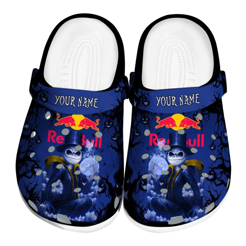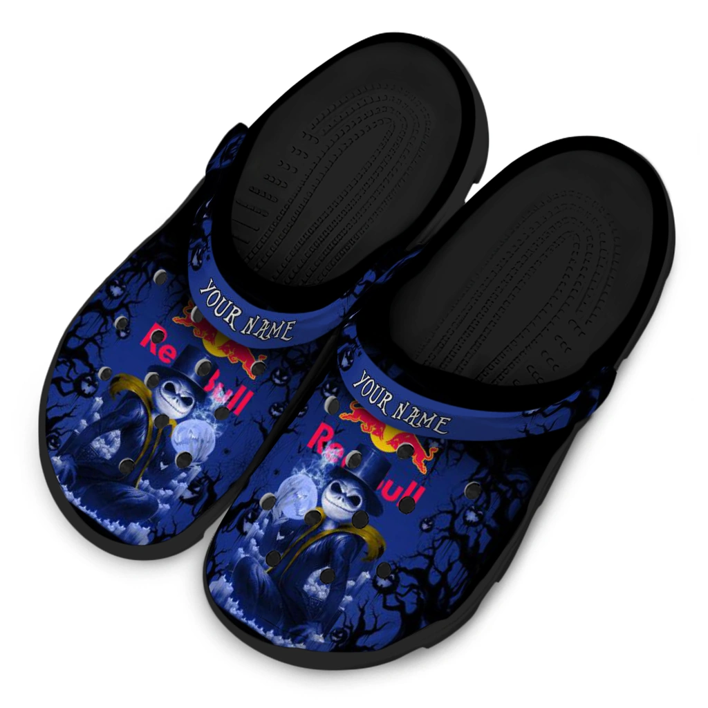 Customized Red Bull Skellington Night Black Blue Clogs