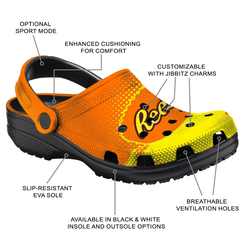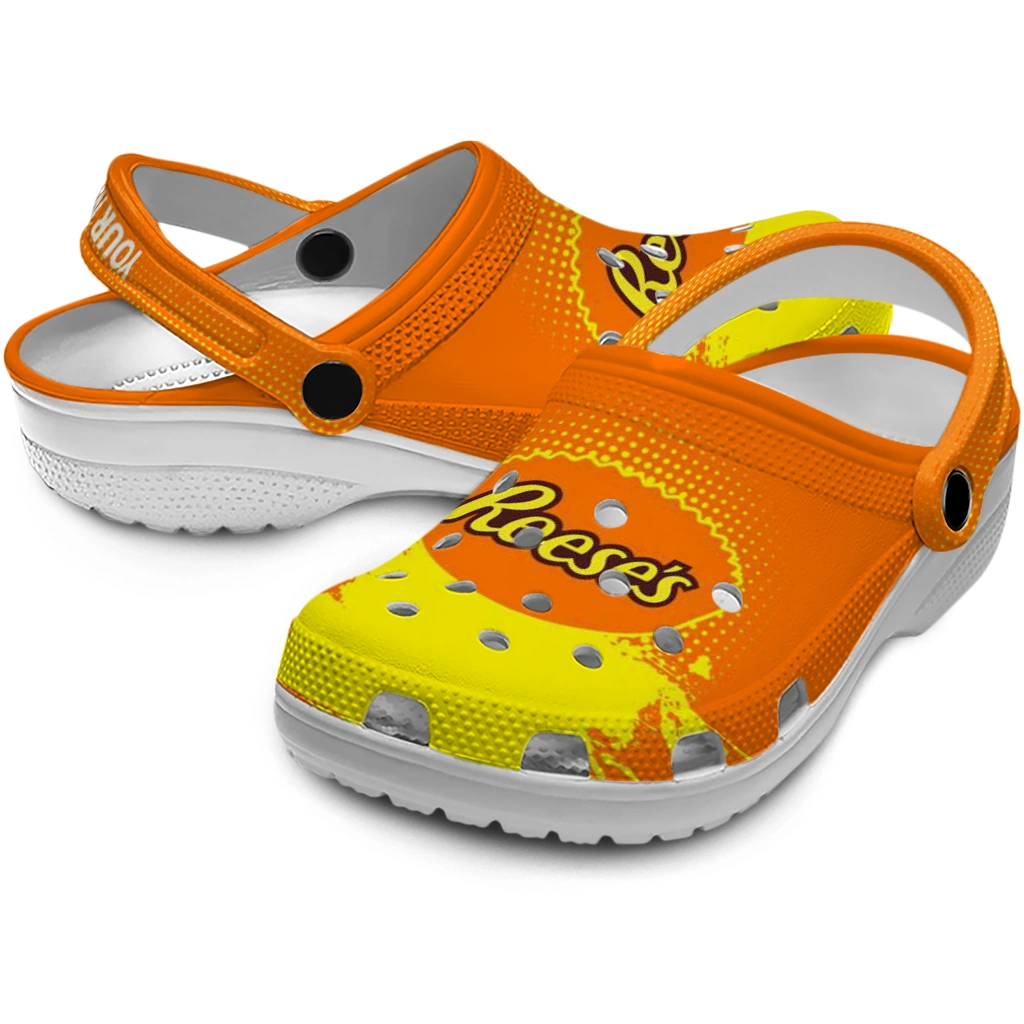 Customized Reese’s Candy Splash Orange Yellow Clogs
