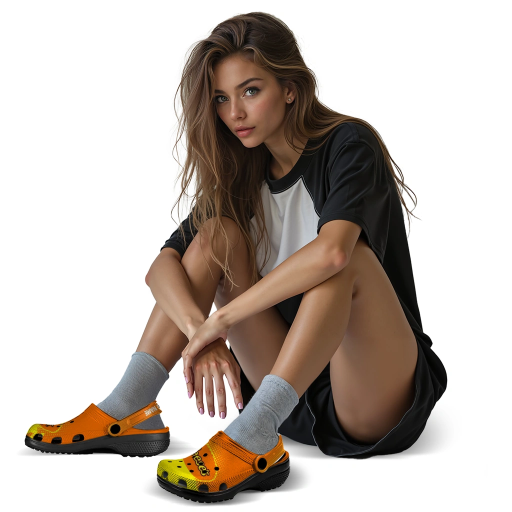The Customized Reese’s Candy Splash Orange Yellow Clogs from Hey Clogs slips on in seconds and keeps pace with your day – from slow mornings at home to city strolls and weekend getaways. Thoughtful design meets playful style with cheerful colors and prints that pop, adding personality to every step while delivering easy, breezy comfort and lightweight support wherever you wander. Want a signature touch? Customize yours with a name or initials for a one-of-one pair.