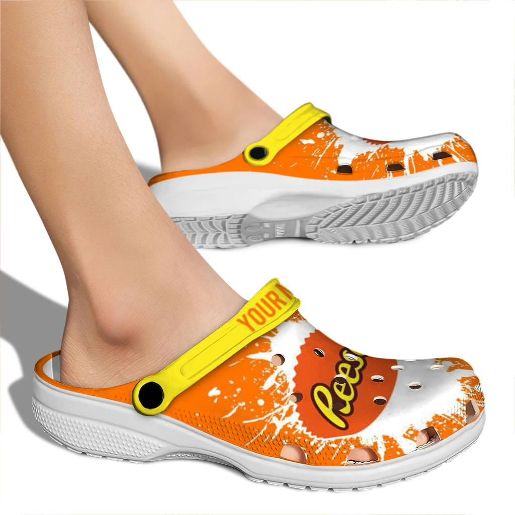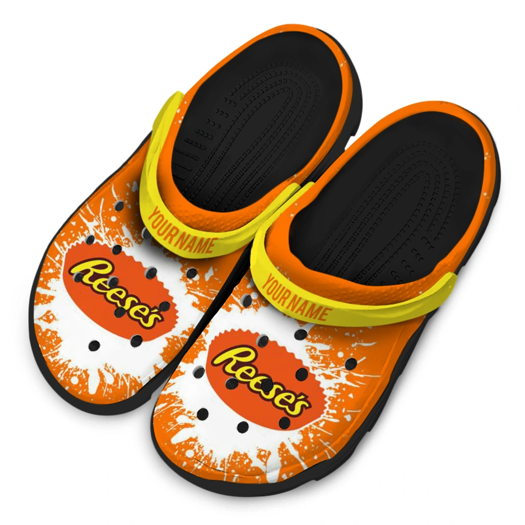 You’ll love it at first sight – and even more when it’s yours alone. Finish your clogs with a custom name or initials for a personal signature that stands out. Advanced UV printing keeps colors vivid without fading or peeling, so your look stays fresh from home lounging to errands, travel days, and lazy afternoons by the water. Easy to slip on and easy to love, the Customized Reese’s Drip Orange Yellow Clogs brings together practicality, personality, and the playful spirit of Hey Clogs.