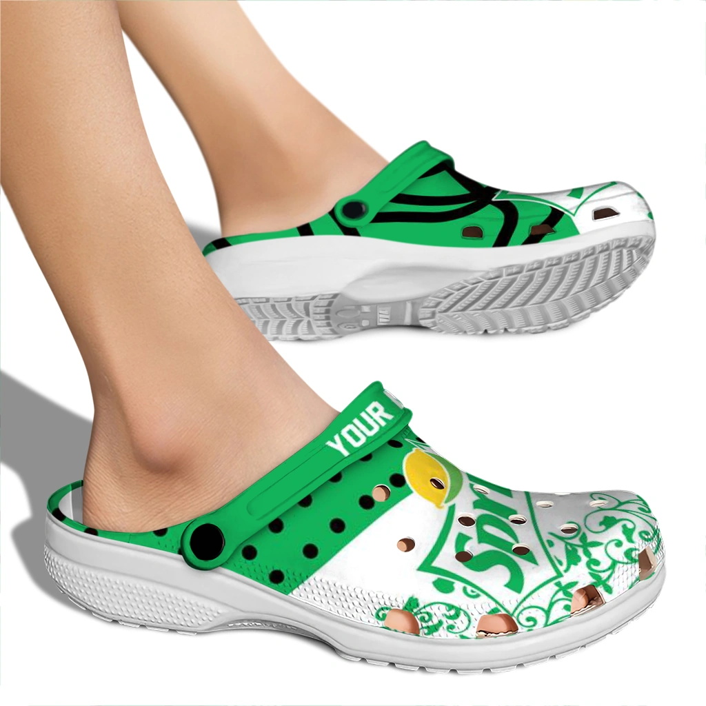 Customized Sprite Hand Green White Clogs