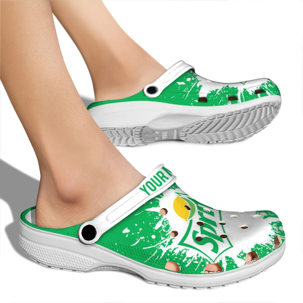Customized Sprite Splash Sprite Green White Clogs