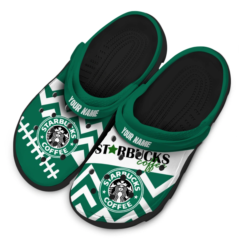 Customized Starbucks Logo Green White Clogs
