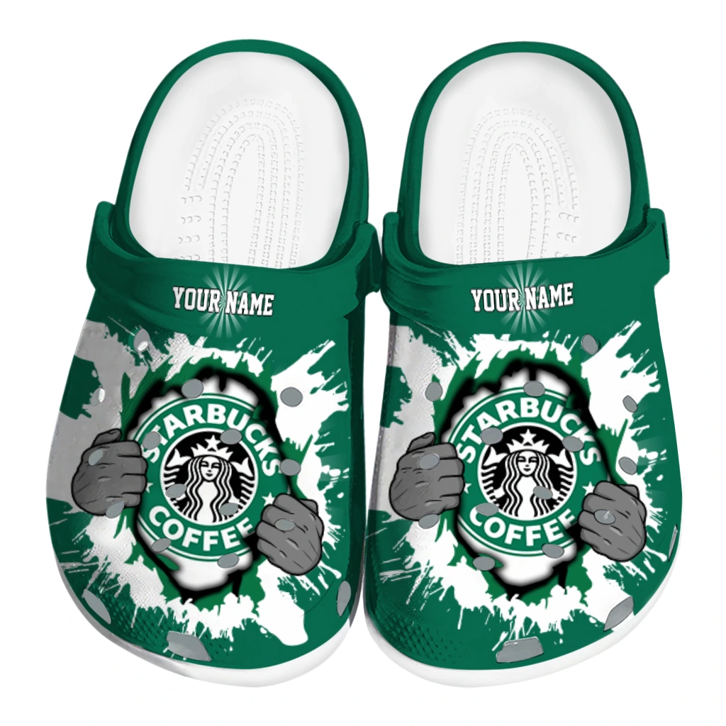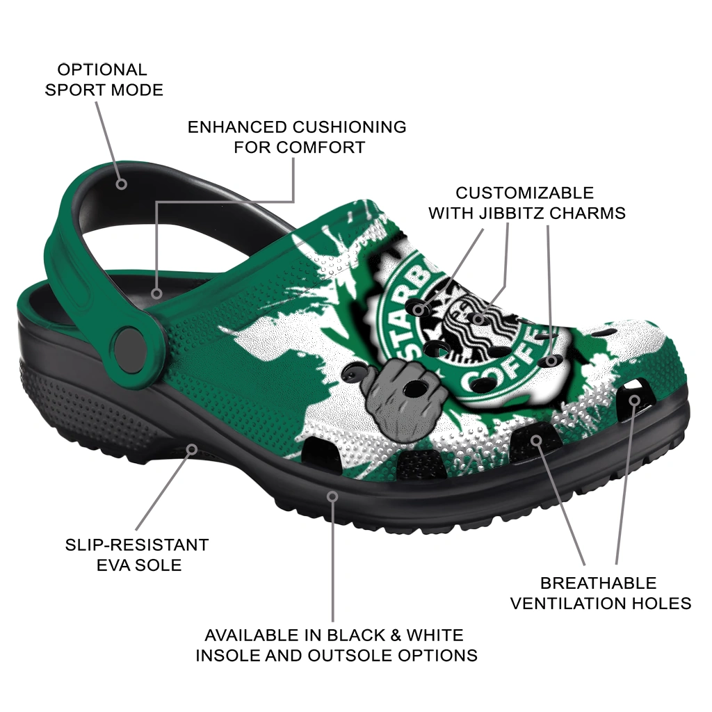 Customized Starbucks Superman Green White Clogs