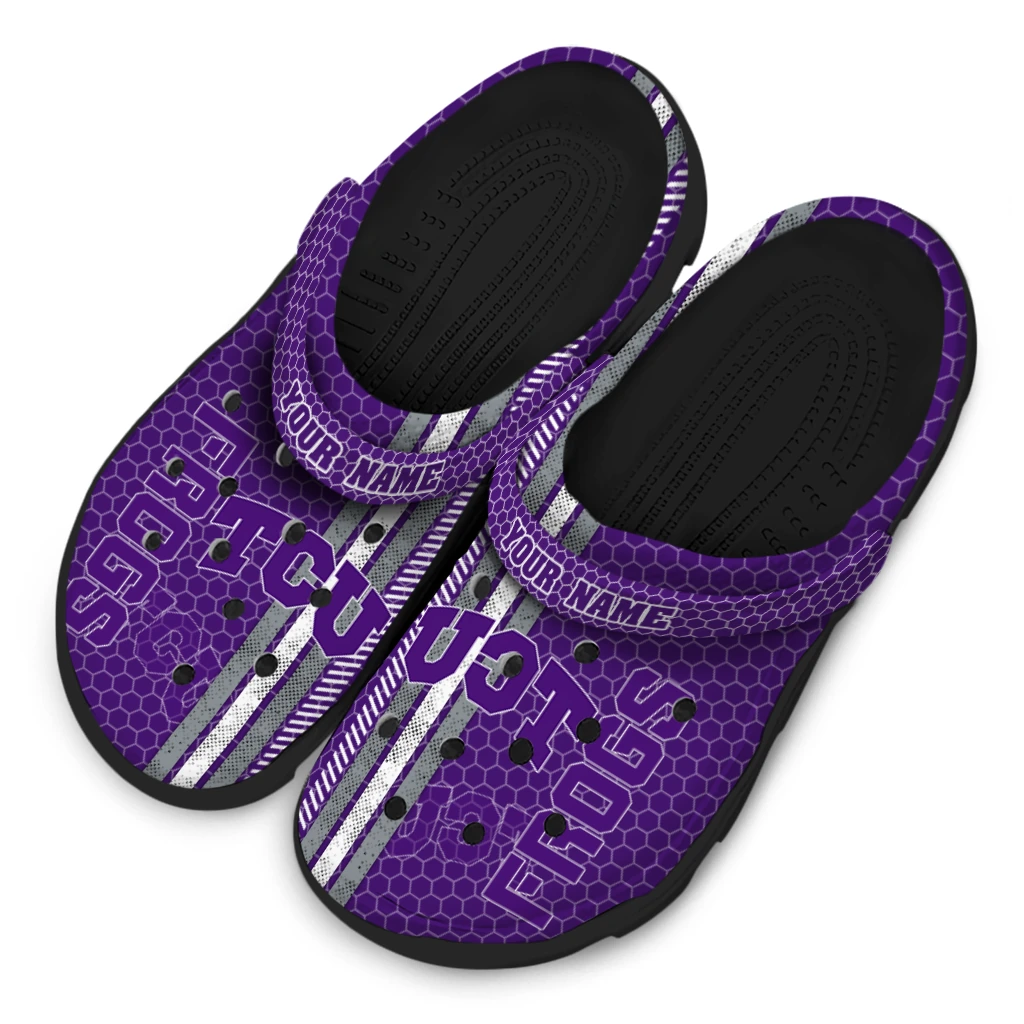 Customized TCU Horned Frogs Contrasting Stripes Clogs