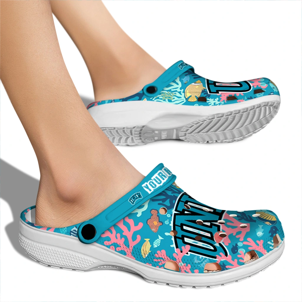 Your Clogs, Your Vibe, Your Name! Customized UNLV Rebels Tropical Fish Ocean Clogs from Hey Clogs lets you take sport team-inspired style to a personal level! Featuring the bold colors you love, these featherlight clogs deliver unbeatable, all-day comfort. What a great way to make them truly yours: add your name to the heel strap! Perfect for gifting or treating yourself, these personalized clogs are a fun, spirited way to step out in comfort.