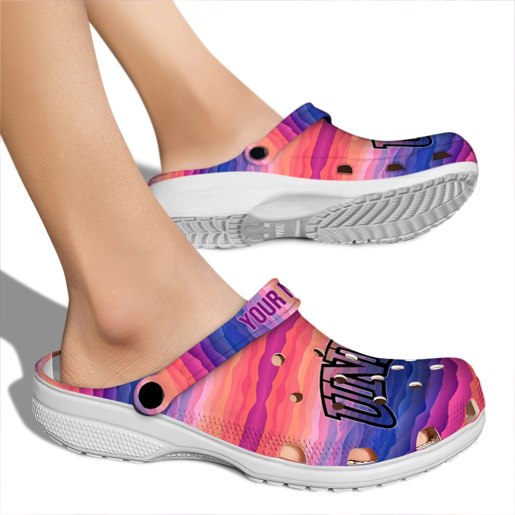Your Clogs, Your Vibe, Your Name! Customized UNLV Rebels Wavy Stripes Clogs from Hey Clogs lets you take sport team-inspired style to a personal level! Featuring the bold colors you love, these featherlight clogs deliver unbeatable, all-day comfort. What a great way to make them truly yours: add your name to the heel strap! Perfect for gifting or treating yourself, these personalized clogs are a fun, spirited way to step out in comfort.