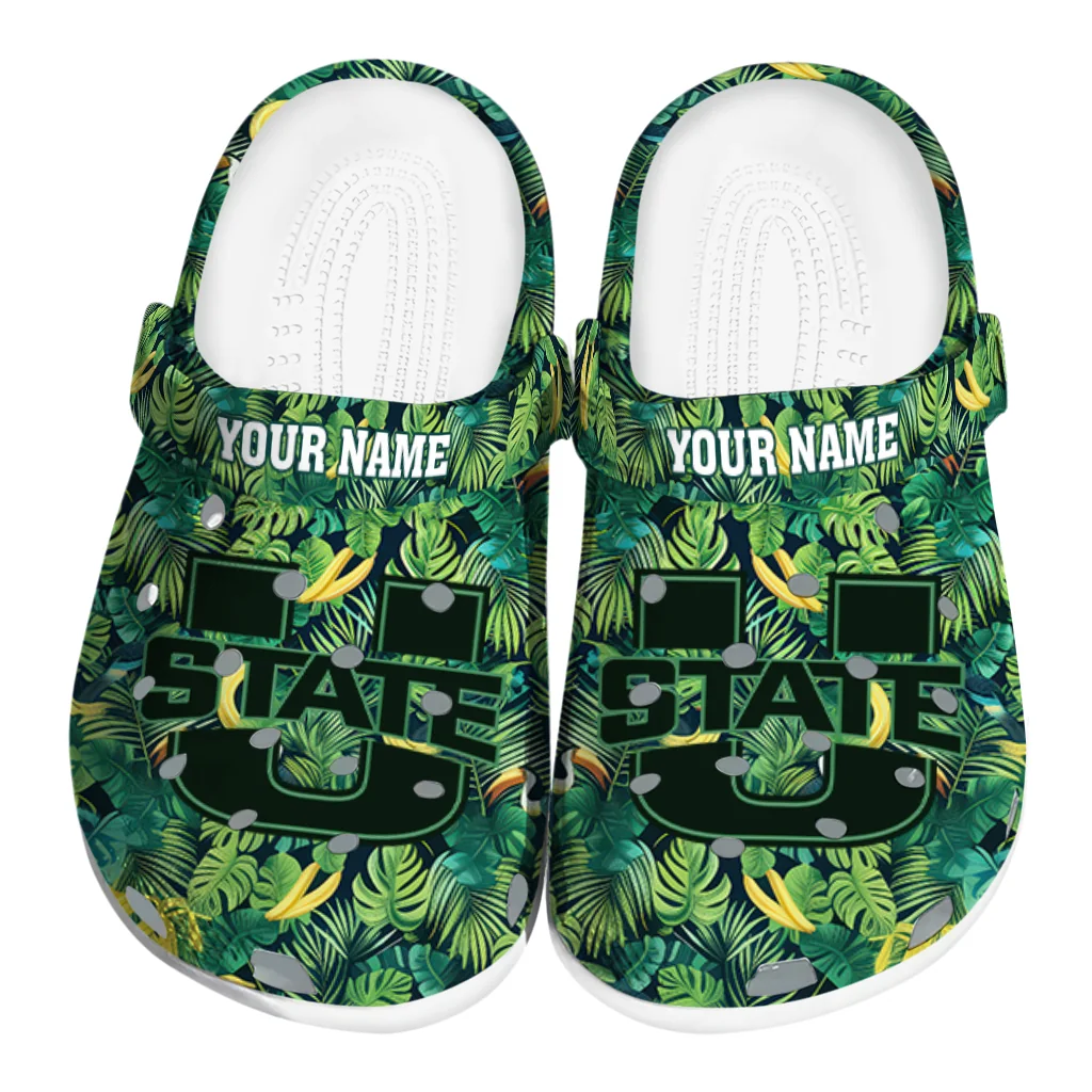 Your Clogs, Your Vibe, Your Name! Customized Utah State Aggies Tropical Leaves Clogs from Hey Clogs lets you take sport team-inspired style to a personal level! Featuring the bold colors you love, these featherlight clogs deliver unbeatable, all-day comfort. What a great way to make them truly yours: add your name to the heel strap! Perfect for gifting or treating yourself, these personalized clogs are a fun, spirited way to step out in comfort.