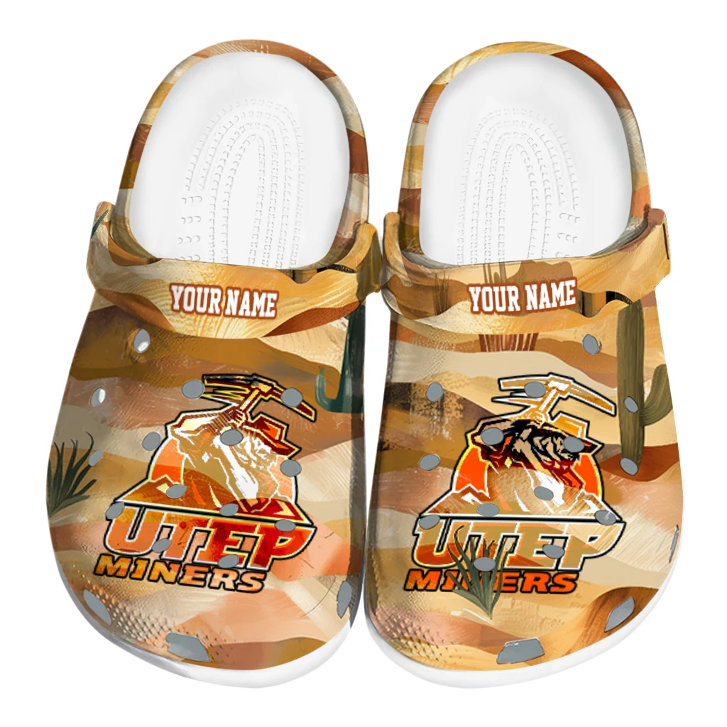 Your Clogs, Your Vibe, Your Name! Custom UTEP Miners Desert Cactus Pattern Clogs from Hey Clogs lets you take sport team-inspired style to a personal level! Featuring the bold colors you love, these featherlight clogs deliver unbeatable, all-day comfort. What a great way to make them truly yours: add your name to the heel strap! Perfect for gifting or treating yourself, these personalized clogs are a fun, spirited way to step out in comfort.