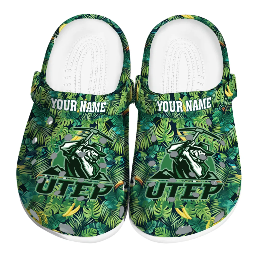 Your Clogs, Your Vibe, Your Name! Customized UTEP Miners Tropical Leaves Clogs from Hey Clogs lets you take sport team-inspired style to a personal level! Featuring the bold colors you love, these featherlight clogs deliver unbeatable, all-day comfort. What a great way to make them truly yours: add your name to the heel strap! Perfect for gifting or treating yourself, these personalized clogs are a fun, spirited way to step out in comfort.