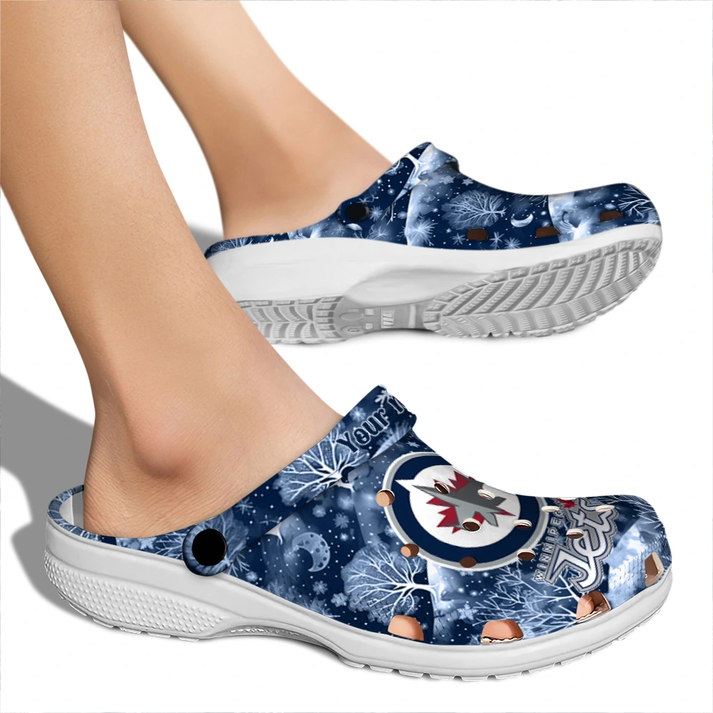 Your Clogs, Your Vibe, Your Name! Personalized Winnipeg Jets Christmas Motif Clogs from Hey Clogs lets you take sport team-inspired style to a personal level! Featuring the bold colors you love, these featherlight clogs deliver unbeatable, all-day comfort. What a great way to make them truly yours: add your name to the heel strap! Perfect for gifting or treating yourself, these personalized clogs are a fun, spirited way to step out in comfort.