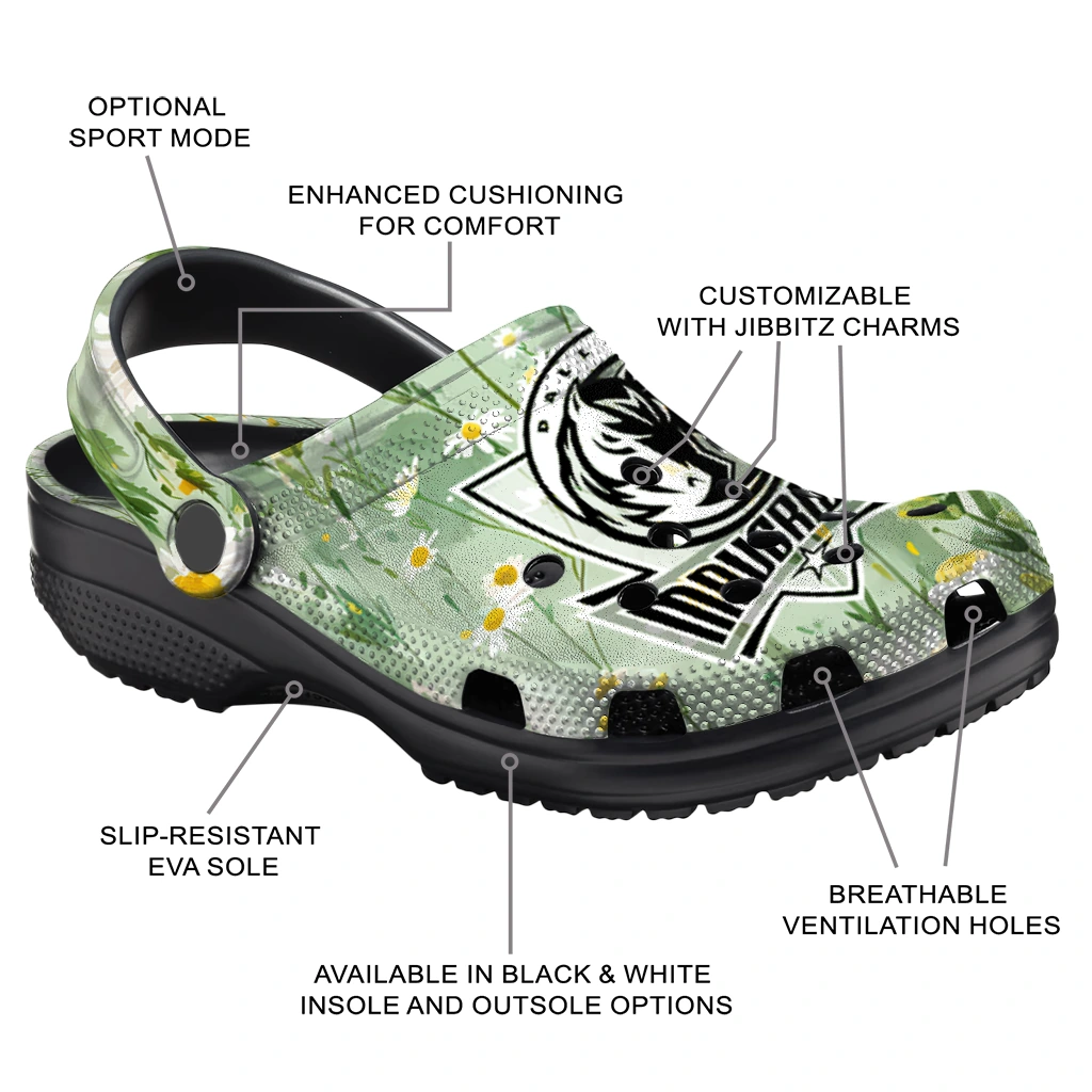 Comfort that Wins the Day! Can footwear truly be this comfortable and cool? Yes, they can! The All-Star Spirit Comfort Clogs – Dallas Mavericks Daisy Cluster Clogs deliver the cushiony feel your feet crave. Crafted from premium, durable EVA, they offer excellent support and shock absorption – perfect for those long days on your feet.