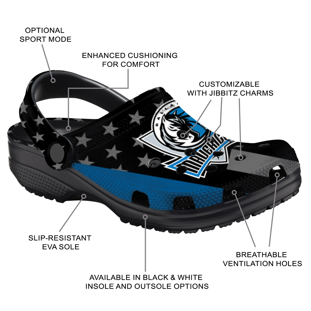 Dallas Mavericks Stellar Stripes Theme Clogs