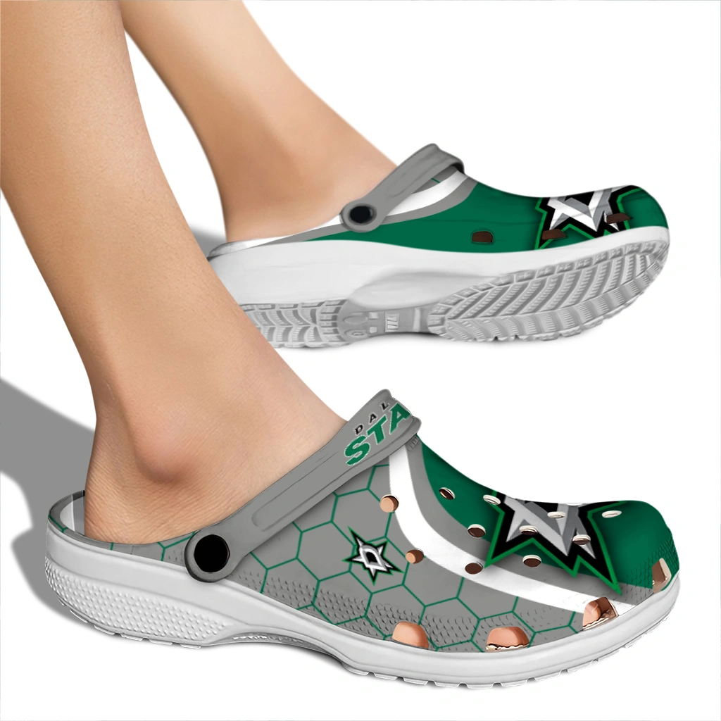 Dallas Stars Hexagon Grid Clogs