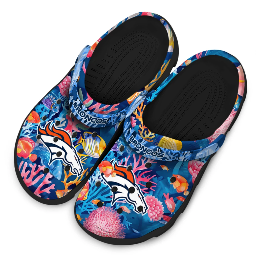 Show your spirit with the ultimate comfort clog! The All-Star Spirit Comfort Clogs – Denver Broncos Ocean Wonders Clogs are designed to keep pace with your active life while showcasing your love for the game. We've combined featherlight EVA material with bold, team-inspired color patterns! These clogs are a home run for versatility, offering slip-on ease, breezy comfort, and a vibrant look that travels effortlessly from the stadium parking lot to your sofa. What an easy way to cheer on your team!