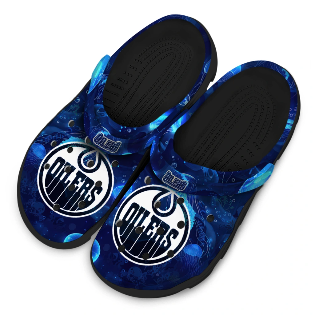 Show your spirit with the ultimate comfort clog! The All-Star Spirit Comfort Clogs – Edmonton Oilers Jellyfish Ocean Clogs are designed to keep pace with your active life while showcasing your love for the game. We've combined featherlight EVA material with bold, team-inspired color patterns! These clogs are a home run for versatility, offering slip-on ease, breezy comfort, and a vibrant look that travels effortlessly from the stadium parking lot to your sofa. What an easy way to cheer on your team!