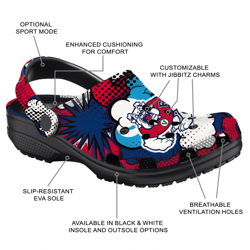 Comfort that Wins the Day! Can footwear truly be this comfortable and cool? Yes, they can! The All-Star Spirit Comfort Clogs – Fresno State Bulldogs Cloud Splash Clogs deliver the cushiony feel your feet crave. Crafted from premium, durable EVA, they offer excellent support and shock absorption – perfect for those long days on your feet.