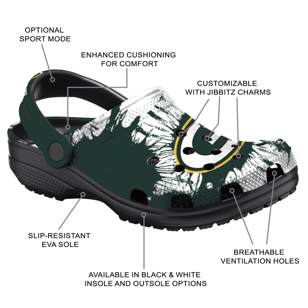 Show your spirit with the ultimate comfort clog! The All-Star Spirit Comfort Clogs – Green Bay Packers Splatter Graphics Clogs are designed to keep pace with your active life while showcasing your love for the game. We’ve combined featherlight EVA material with bold, team-inspired color patterns! These clogs are a home run for versatility, offering slip-on ease, breezy comfort, and a vibrant look that travels effortlessly from the stadium parking lot to your sofa. What an easy way to cheer on your team!