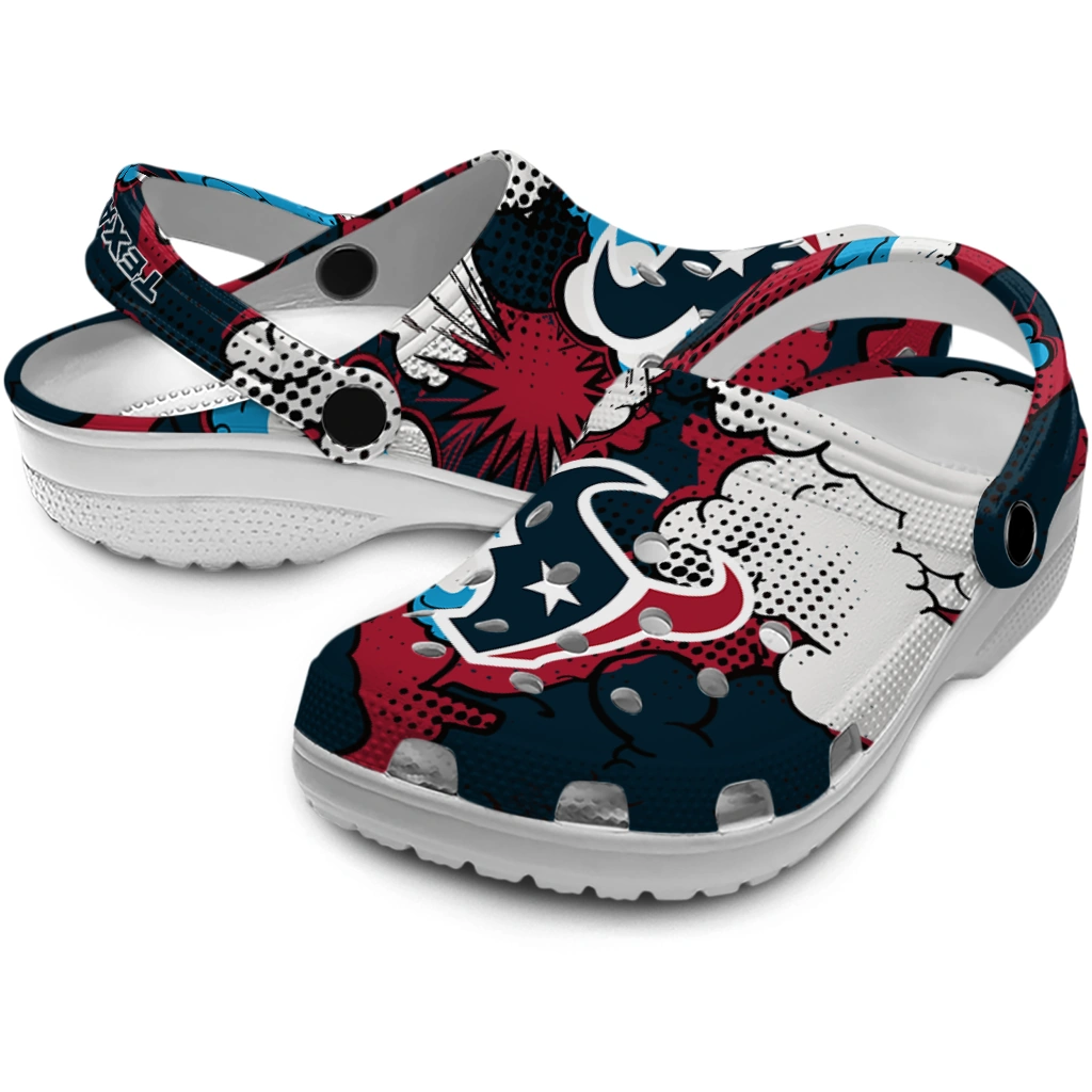 Show your spirit with the ultimate comfort clog! The All-Star Spirit Comfort Clogs – Houston Texans Cloud Splash Clogs are designed to keep pace with your active life while showcasing your love for the game. We've combined featherlight EVA material with bold, team-inspired color patterns! These clogs are a home run for versatility, offering slip-on ease, breezy comfort, and a vibrant look that travels effortlessly from the stadium parking lot to your sofa. What an easy way to cheer on your team!