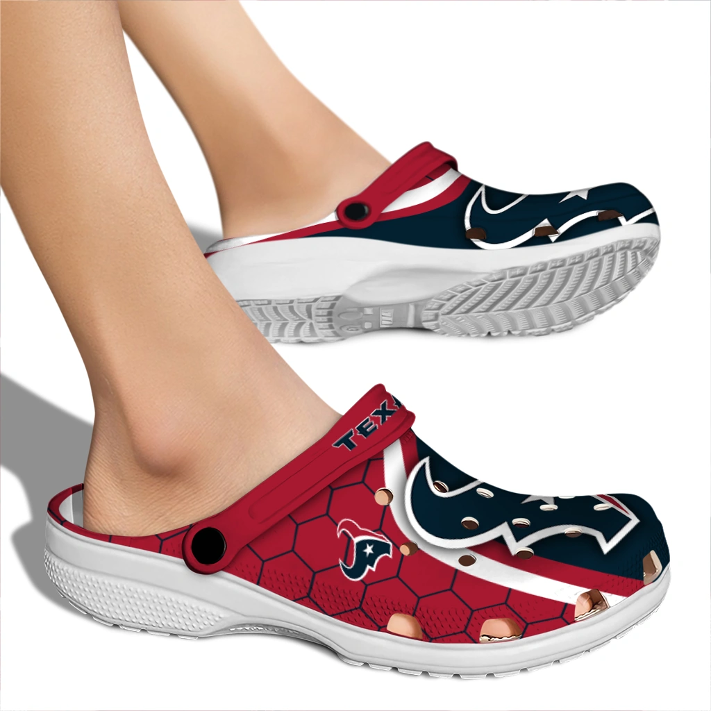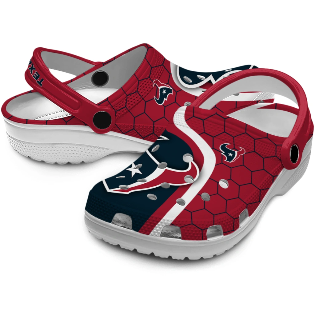Show your spirit with the ultimate comfort clog! The All-Star Spirit Comfort Clogs – Houston Texans Hexagon Grid Clogs are designed to keep pace with your active life while showcasing your love for the game. We’ve combined featherlight EVA material with bold, team-inspired color patterns! These clogs are a home run for versatility, offering slip-on ease, breezy comfort, and a vibrant look that travels effortlessly from the stadium parking lot to your sofa. What an easy way to cheer on your team!