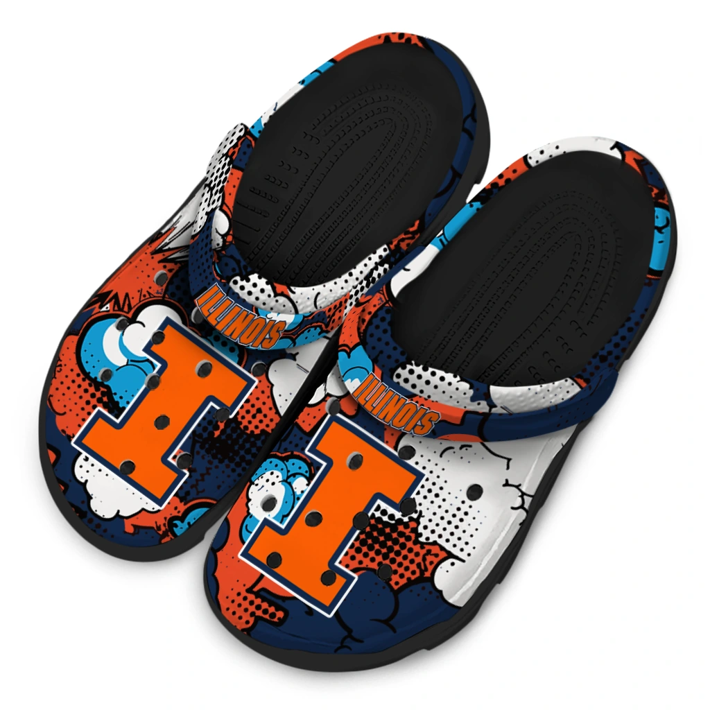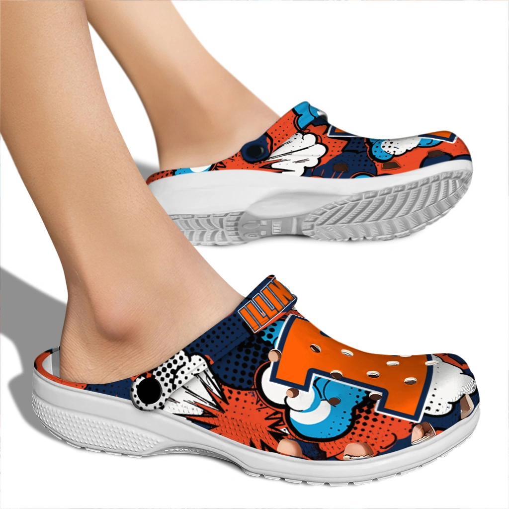 Show your spirit with the ultimate comfort clog! The All-Star Spirit Comfort Clogs – Illinois Fighting Illini Cloud Splash Clogs are designed to keep pace with your active life while showcasing your love for the game. We've combined featherlight EVA material with bold, team-inspired color patterns! These clogs are a home run for versatility, offering slip-on ease, breezy comfort, and a vibrant look that travels effortlessly from the stadium parking lot to your sofa. What an easy way to cheer on your team!