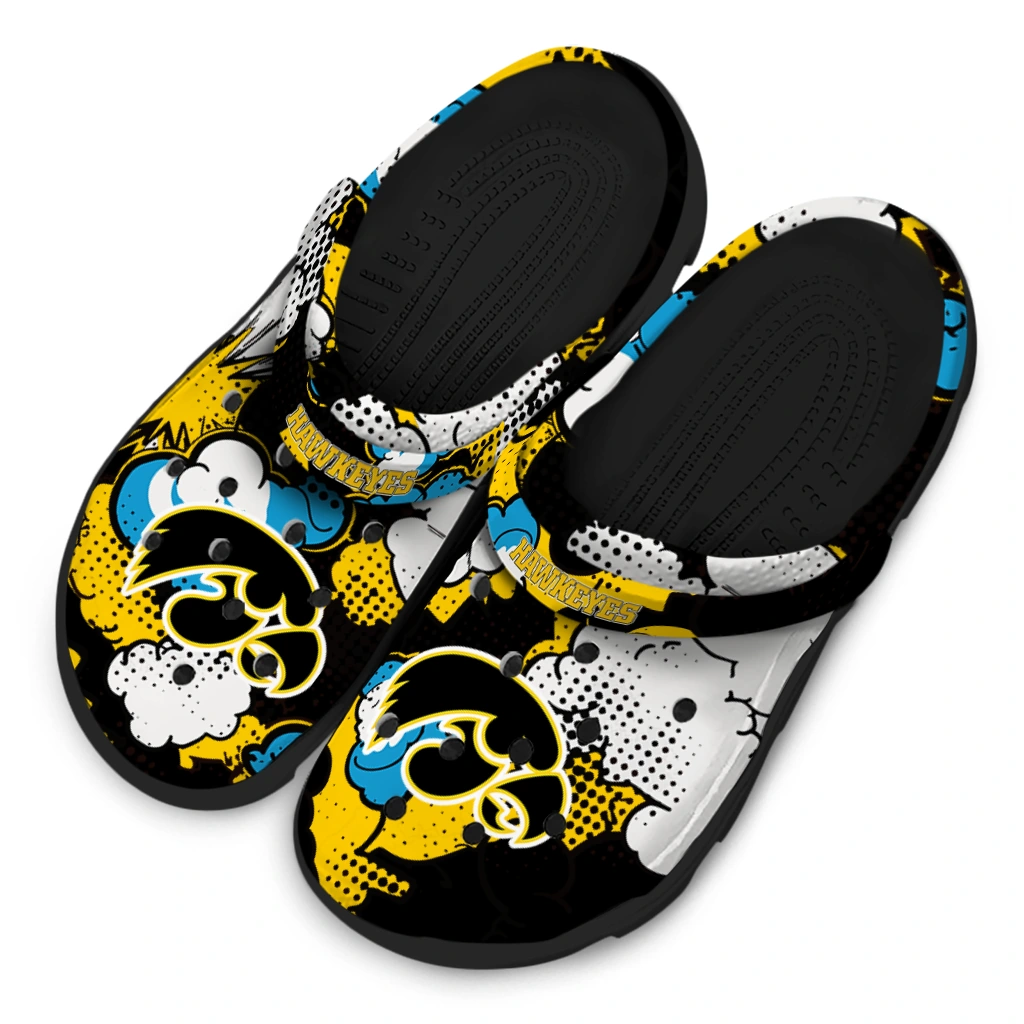 Show your spirit with the ultimate comfort clog! The All-Star Spirit Comfort Clogs – Iowa Hawkeyes Cloud Splash Clogs are designed to keep pace with your active life while showcasing your love for the game. We've combined featherlight EVA material with bold, team-inspired color patterns! These clogs are a home run for versatility, offering slip-on ease, breezy comfort, and a vibrant look that travels effortlessly from the stadium parking lot to your sofa. What an easy way to cheer on your team!