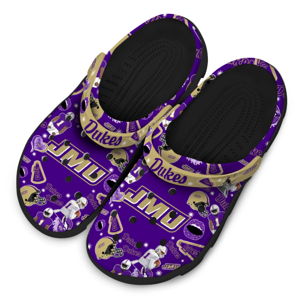 Show your spirit with the ultimate comfort clog! The All-Star Spirit Comfort Clogs – James Madison Dukes Football Icons Clogs are designed to keep pace with your active life while showcasing your love for the game. We’ve combined featherlight EVA material with bold, team-inspired color patterns! These clogs are a home run for versatility, offering slip-on ease, breezy comfort, and a vibrant look that travels effortlessly from the stadium parking lot to your sofa. What an easy way to cheer on your team!