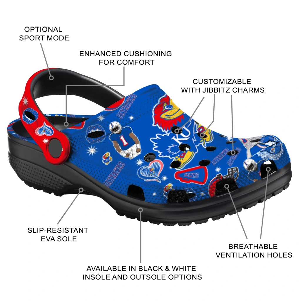 Comfort that Wins the Day! Can footwear truly be this comfortable and cool? Yes, they can! The All-Star Spirit Comfort Clogs – Kansas Jayhawks Football Icons Clogs deliver the cushiony feel your feet crave. Crafted from premium, durable EVA, they offer excellent support and shock absorption – perfect for those long days on your feet.