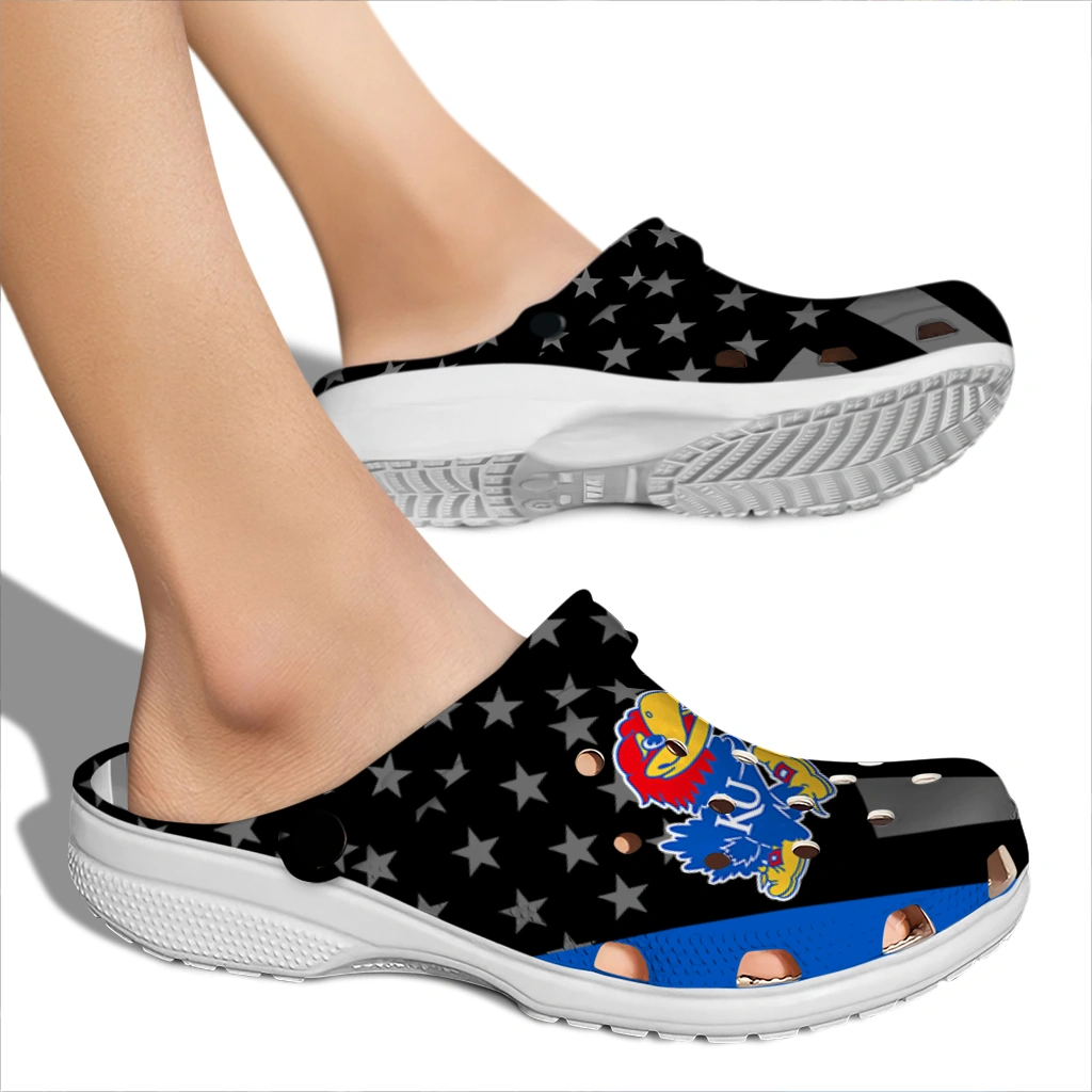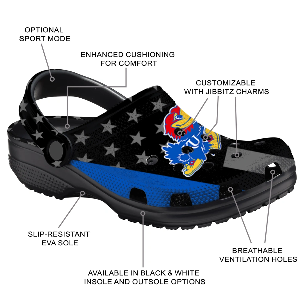 Kansas Jayhawks Stellar Stripes Theme Clogs