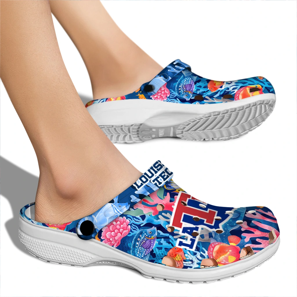 Show your spirit with the ultimate comfort clog! The All-Star Spirit Comfort Clogs – LA Tech Ocean Wonders Clogs are designed to keep pace with your active life while showcasing your love for the game. We've combined featherlight EVA material with bold, team-inspired color patterns! These clogs are a home run for versatility, offering slip-on ease, breezy comfort, and a vibrant look that travels effortlessly from the stadium parking lot to your sofa. What an easy way to cheer on your team!