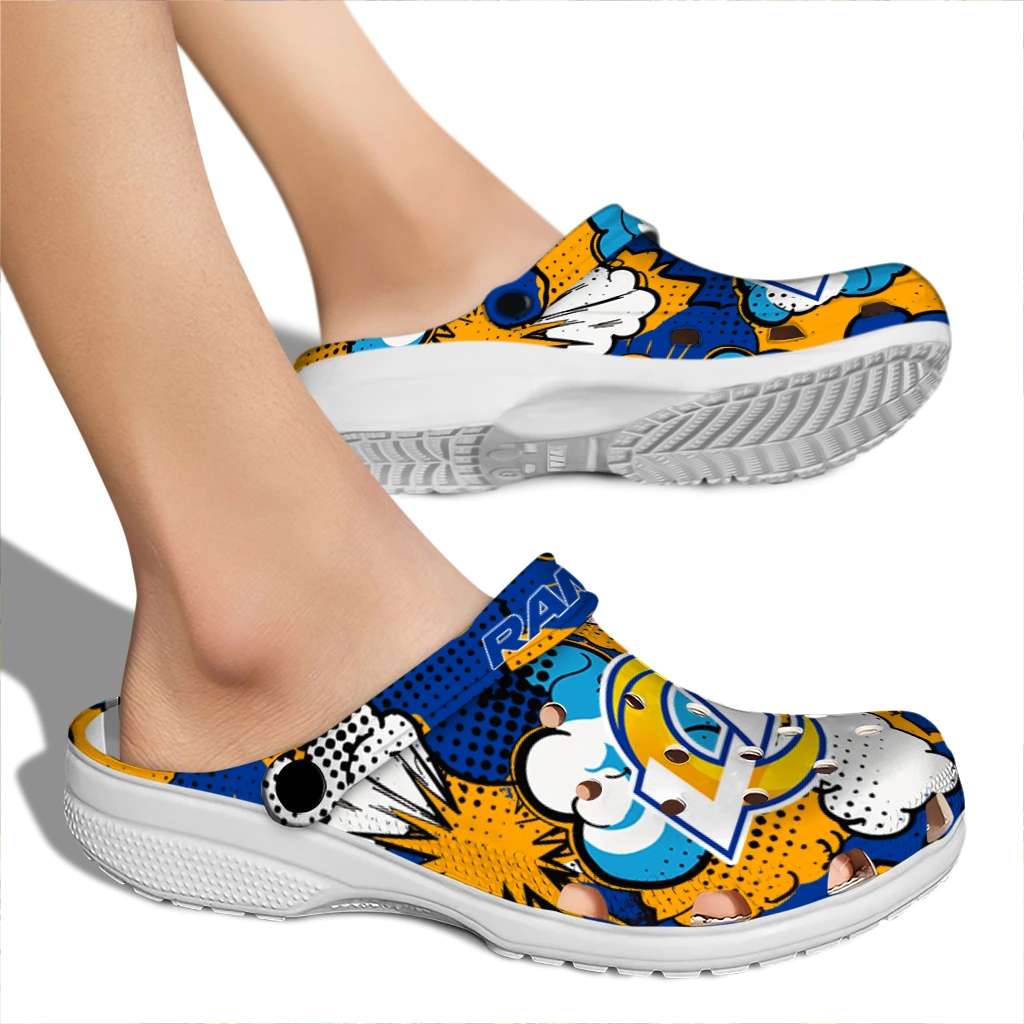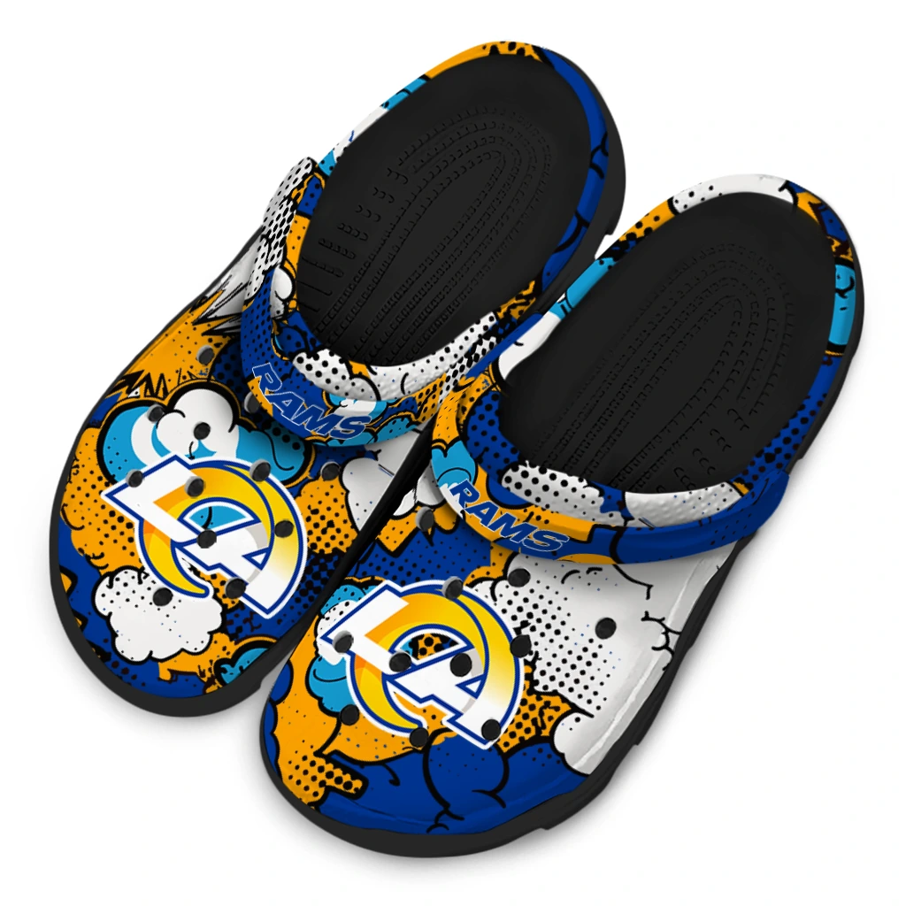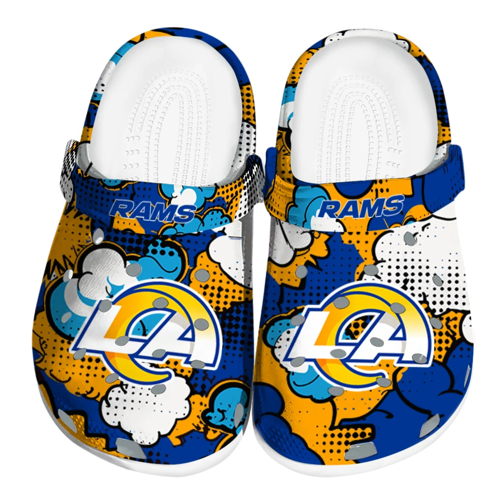 Show your spirit with the ultimate comfort clog! The All-Star Spirit Comfort Clogs – Los Angeles Rams Cloud Splash Clogs are designed to keep pace with your active life while showcasing your love for the game. We've combined featherlight EVA material with bold, team-inspired color patterns! These clogs are a home run for versatility, offering slip-on ease, breezy comfort, and a vibrant look that travels effortlessly from the stadium parking lot to your sofa. What an easy way to cheer on your team!