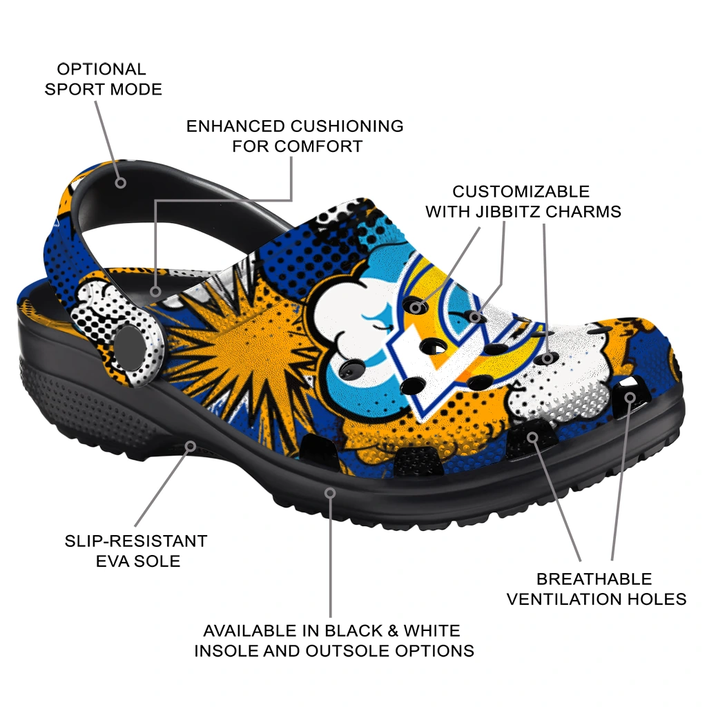 Your Clogs, Your Vibe, Your Name! Custom Los Angeles Rams Snowflake Mosaic Clogs from Hey Clogs lets you take sport team-inspired style to a personal level! Featuring the bold colors you love, these featherlight clogs deliver unbeatable, all-day comfort. What a great way to make them truly yours: add your name to the heel strap! Perfect for gifting or treating yourself, these personalized clogs are a fun, spirited way to step out in comfort.