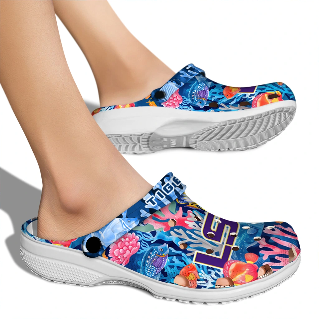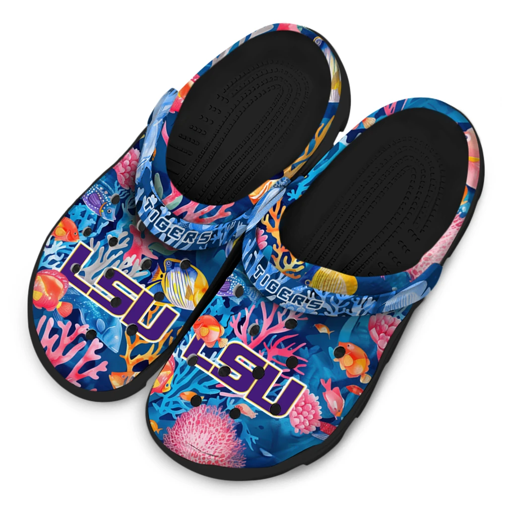 Show your spirit with the ultimate comfort clog! The All-Star Spirit Comfort Clogs – LSU Tigers Ocean Wonders Clogs are designed to keep pace with your active life while showcasing your love for the game. We've combined featherlight EVA material with bold, team-inspired color patterns! These clogs are a home run for versatility, offering slip-on ease, breezy comfort, and a vibrant look that travels effortlessly from the stadium parking lot to your sofa. What an easy way to cheer on your team!