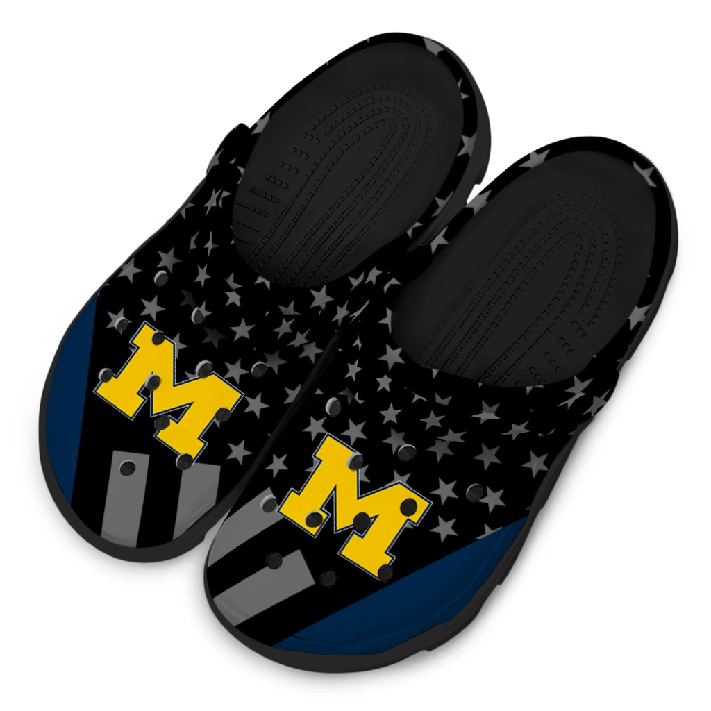 Michigan Wolverines Stellar Stripes Theme Clogs