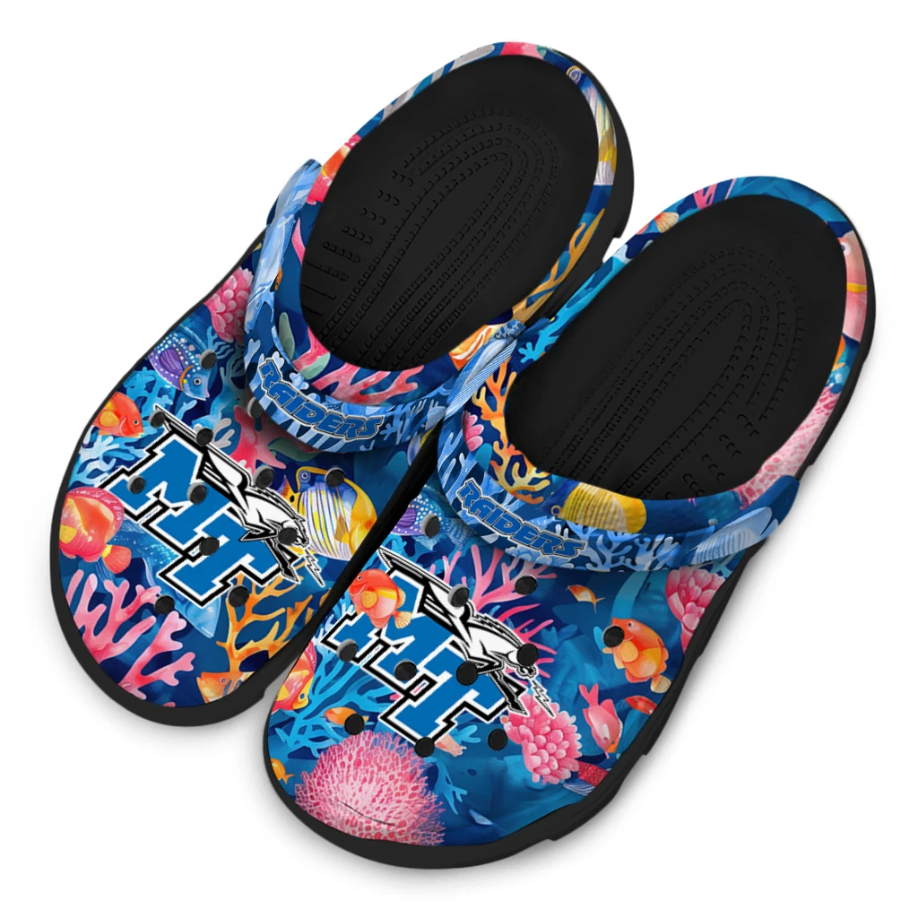 Show your spirit with the ultimate comfort clog! The All-Star Spirit Comfort Clogs – Middle Tennessee Blue Raiders Ocean Wonders Clogs are designed to keep pace with your active life while showcasing your love for the game. We've combined featherlight EVA material with bold, team-inspired color patterns! These clogs are a home run for versatility, offering slip-on ease, breezy comfort, and a vibrant look that travels effortlessly from the stadium parking lot to your sofa. What an easy way to cheer on your team!