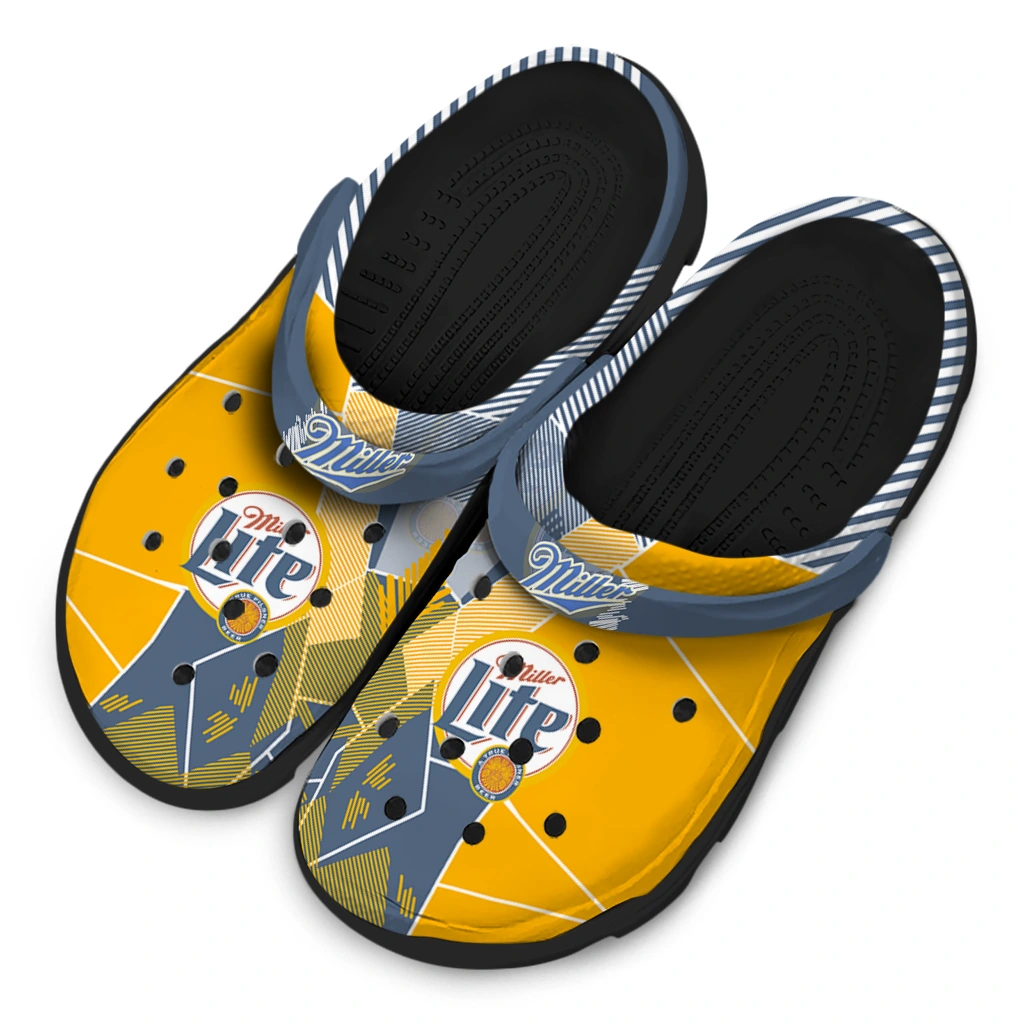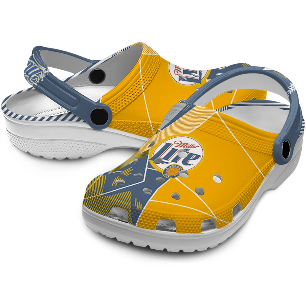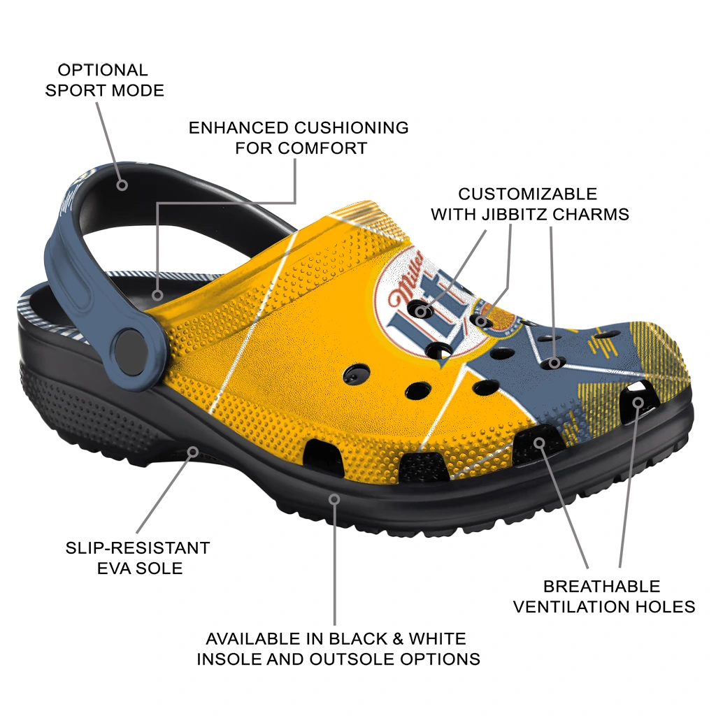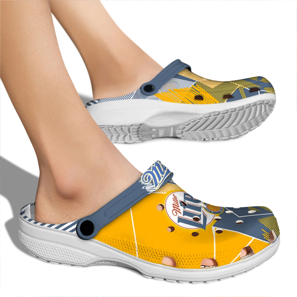 Miller Lite Mosaic Pattern Yellow Blue Clogs