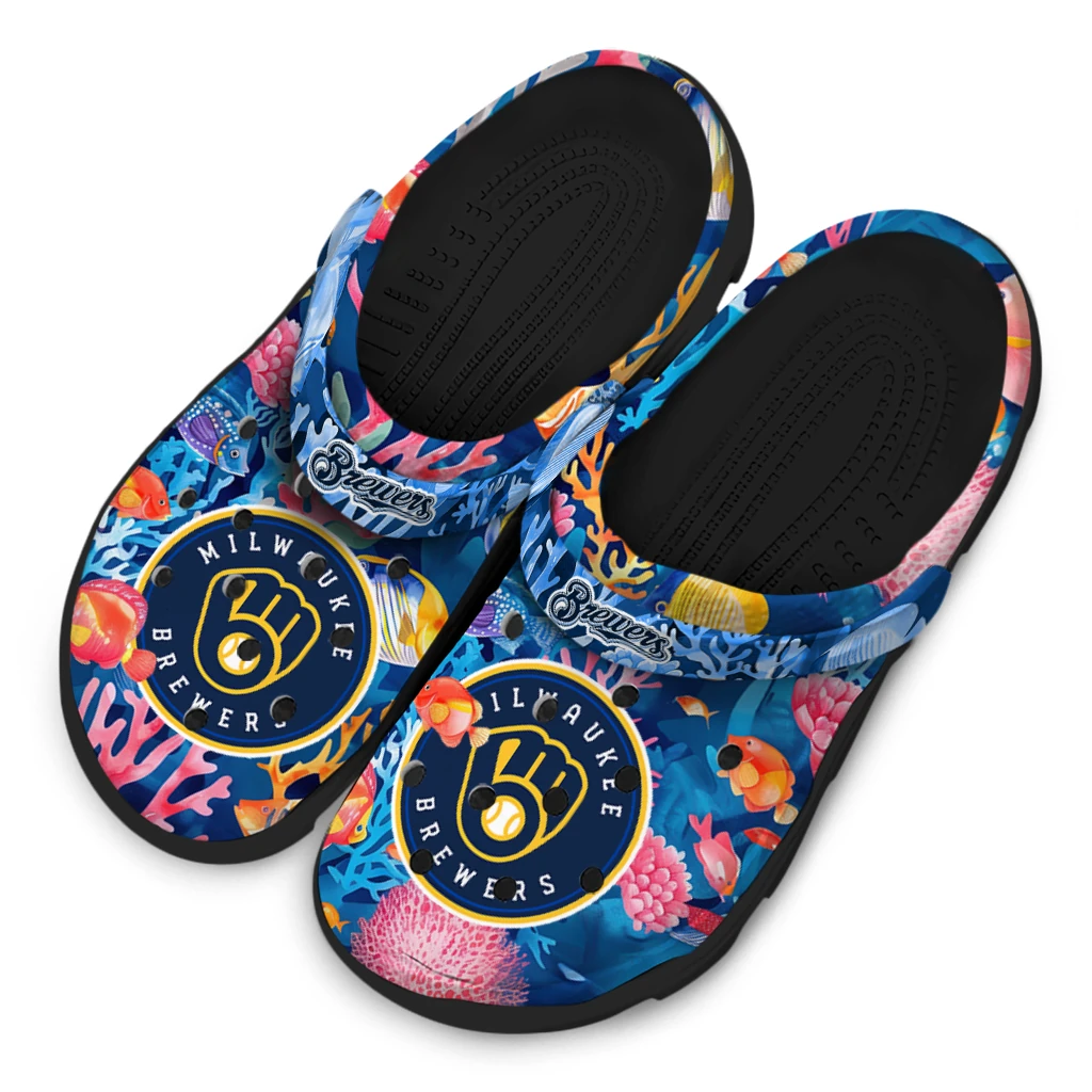 Show your spirit with the ultimate comfort clog! The All-Star Spirit Comfort Clogs – Milwaukee Brewers Ocean Wonders Clogs are designed to keep pace with your active life while showcasing your love for the game. We've combined featherlight EVA material with bold, team-inspired color patterns! These clogs are a home run for versatility, offering slip-on ease, breezy comfort, and a vibrant look that travels effortlessly from the stadium parking lot to your sofa. What an easy way to cheer on your team!