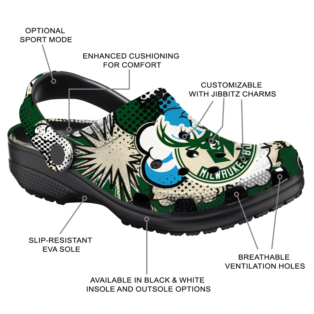 Comfort that Wins the Day! Can footwear truly be this comfortable and cool? Yes, they can! The All-Star Spirit Comfort Clogs – Milwaukee Bucks Cloud Splash Clogs deliver the cushiony feel your feet crave. Crafted from premium, durable EVA, they offer excellent support and shock absorption – perfect for those long days on your feet.