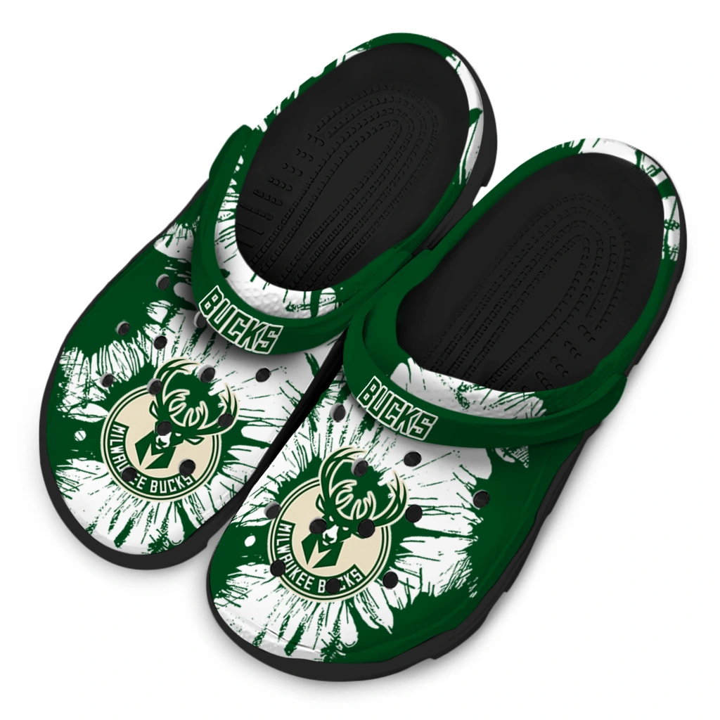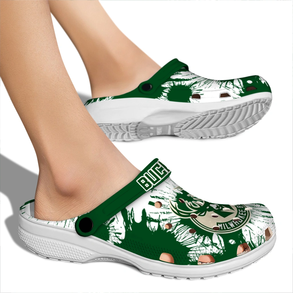 Milwaukee Bucks Splatter Graphics Clogs