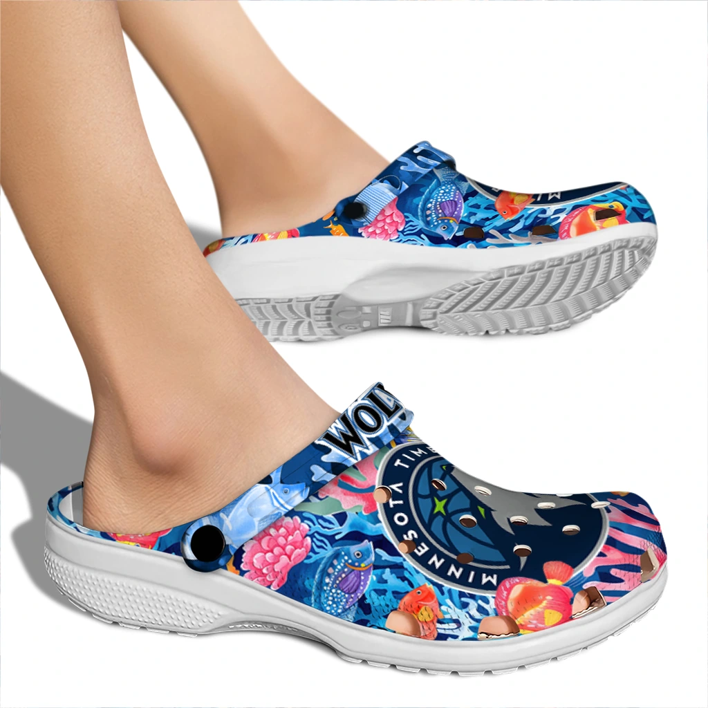 Show your spirit with the ultimate comfort clog! The All-Star Spirit Comfort Clogs – Minnesota Timberwolves Ocean Wonders Clogs are designed to keep pace with your active life while showcasing your love for the game. We've combined featherlight EVA material with bold, team-inspired color patterns! These clogs are a home run for versatility, offering slip-on ease, breezy comfort, and a vibrant look that travels effortlessly from the stadium parking lot to your sofa. What an easy way to cheer on your team!