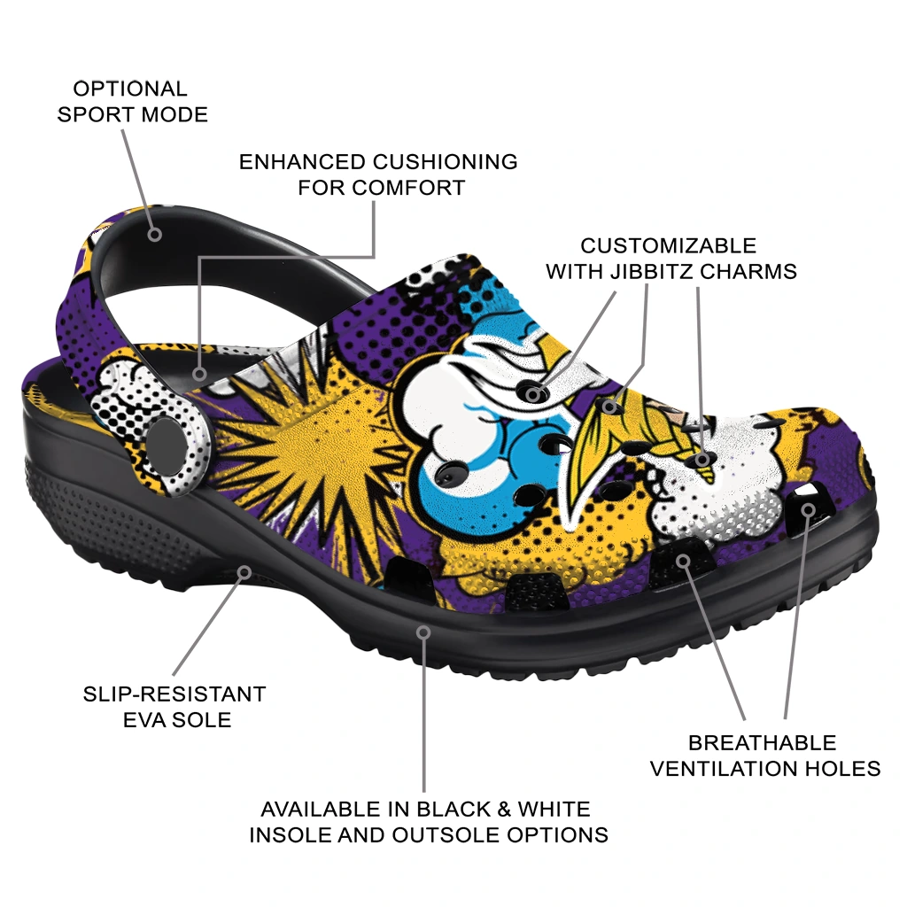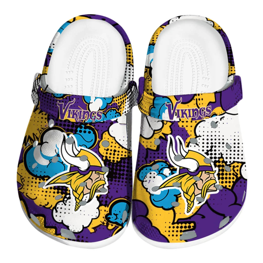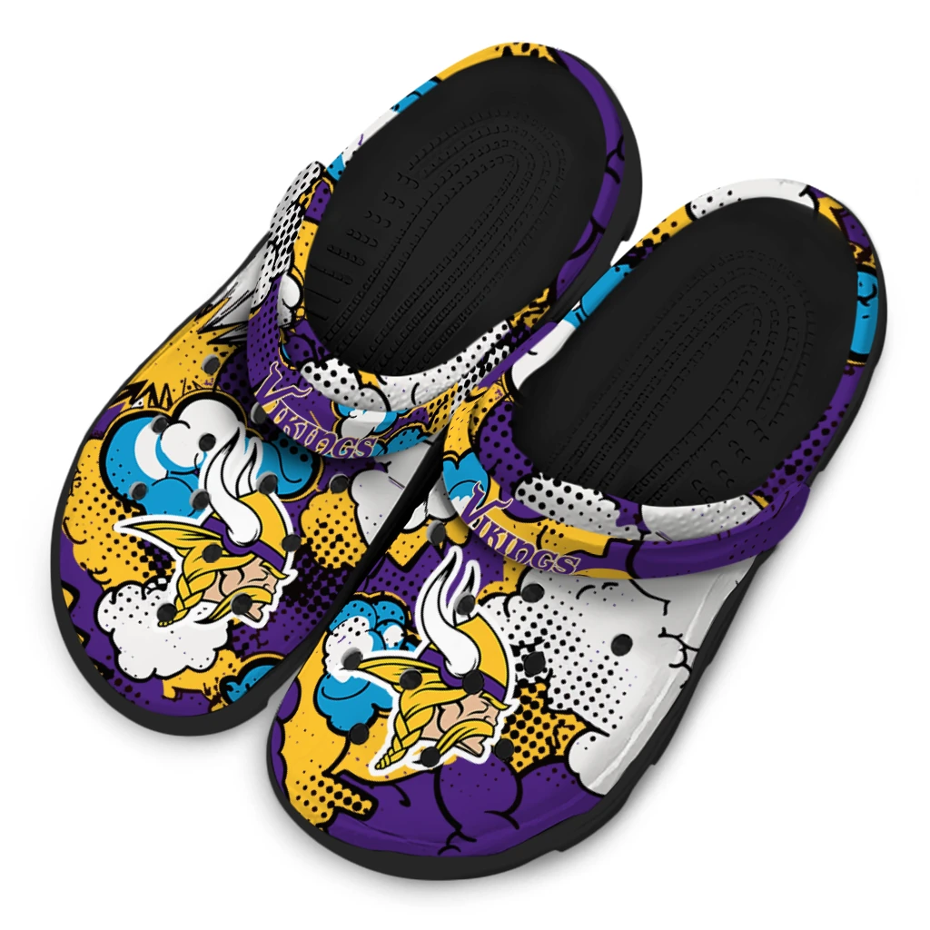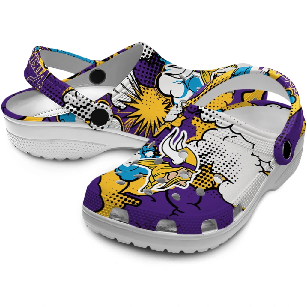 Show your spirit with the ultimate comfort clog! The All-Star Spirit Comfort Clogs – Minnesota Vikings Cloud Splash Clogs are designed to keep pace with your active life while showcasing your love for the game. We've combined featherlight EVA material with bold, team-inspired color patterns! These clogs are a home run for versatility, offering slip-on ease, breezy comfort, and a vibrant look that travels effortlessly from the stadium parking lot to your sofa. What an easy way to cheer on your team!