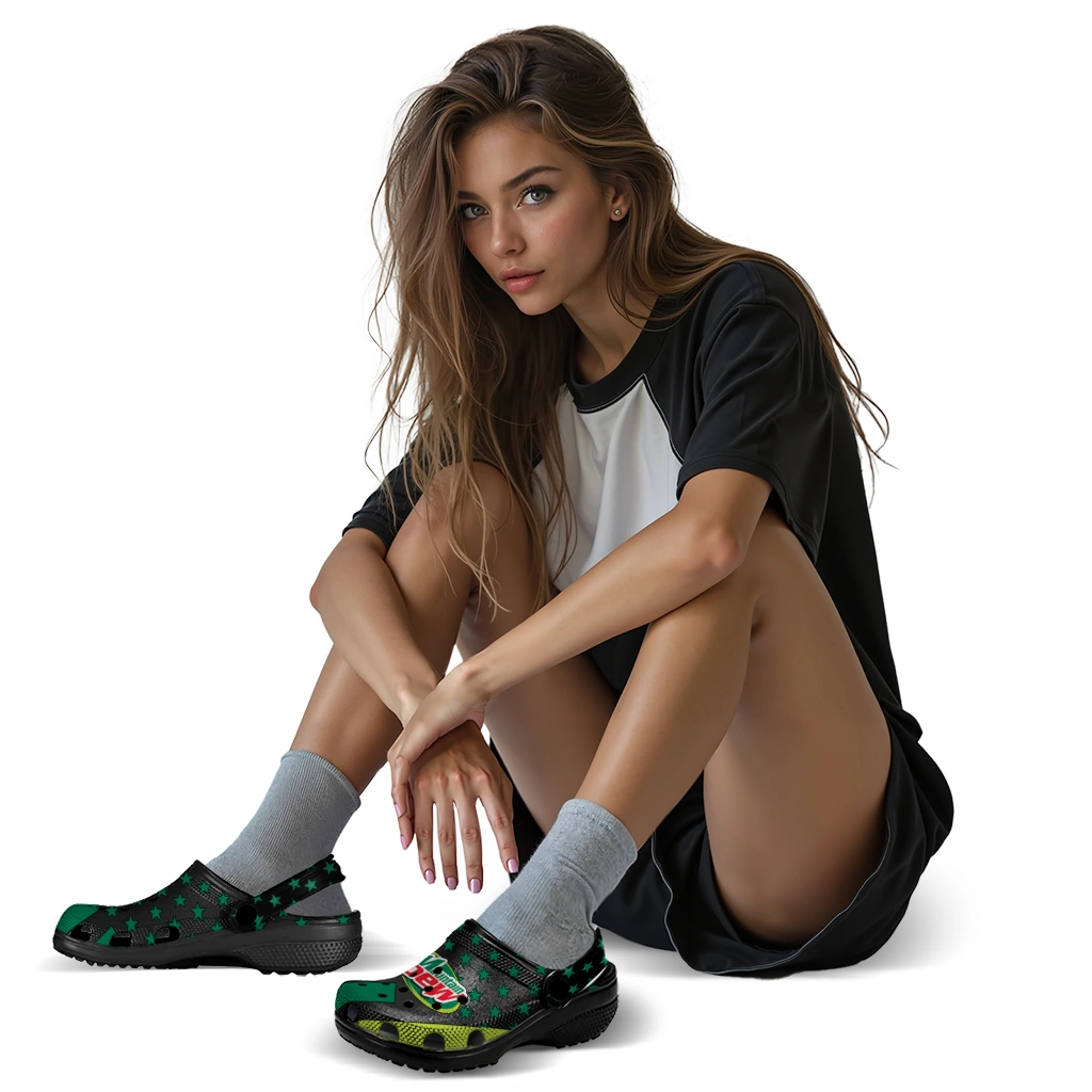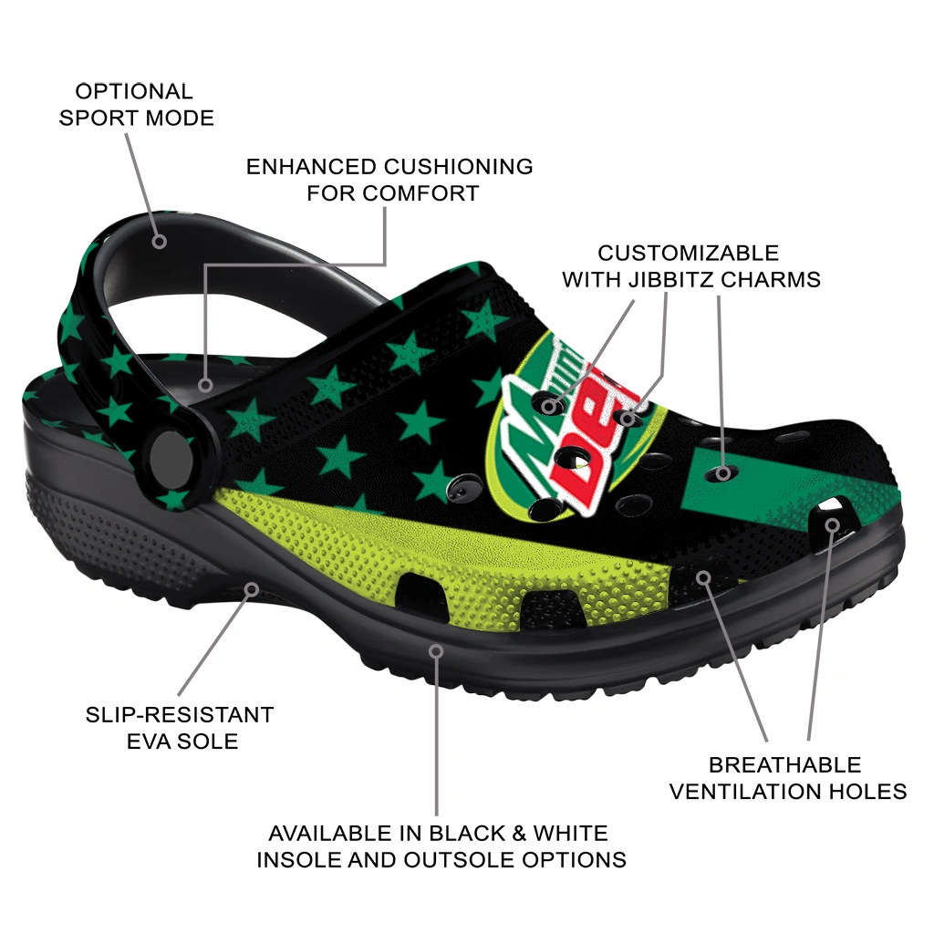 Mountain Dew Green Stars Black Green Clogs
