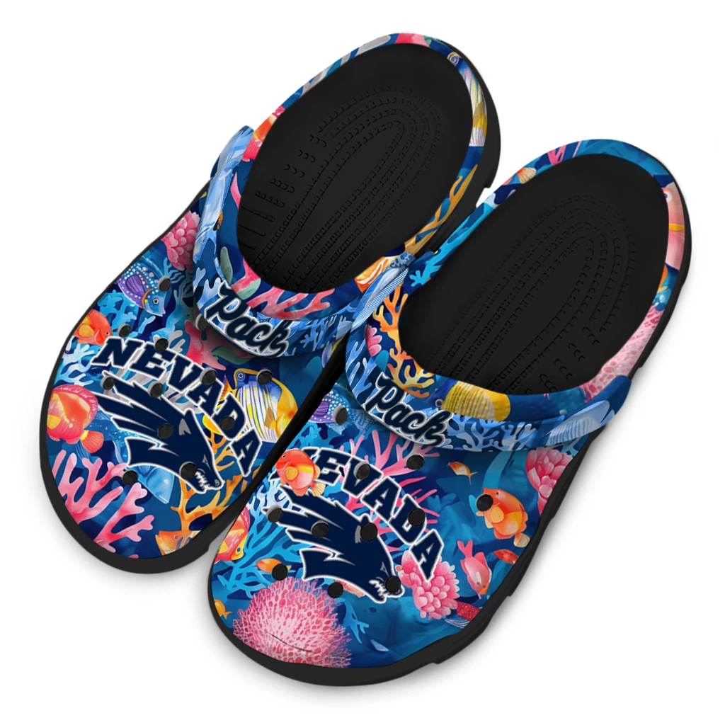 Show your spirit with the ultimate comfort clog! The All-Star Spirit Comfort Clogs – Nevada Wolf Pack Ocean Wonders Clogs are designed to keep pace with your active life while showcasing your love for the game. We've combined featherlight EVA material with bold, team-inspired color patterns! These clogs are a home run for versatility, offering slip-on ease, breezy comfort, and a vibrant look that travels effortlessly from the stadium parking lot to your sofa. What an easy way to cheer on your team!
